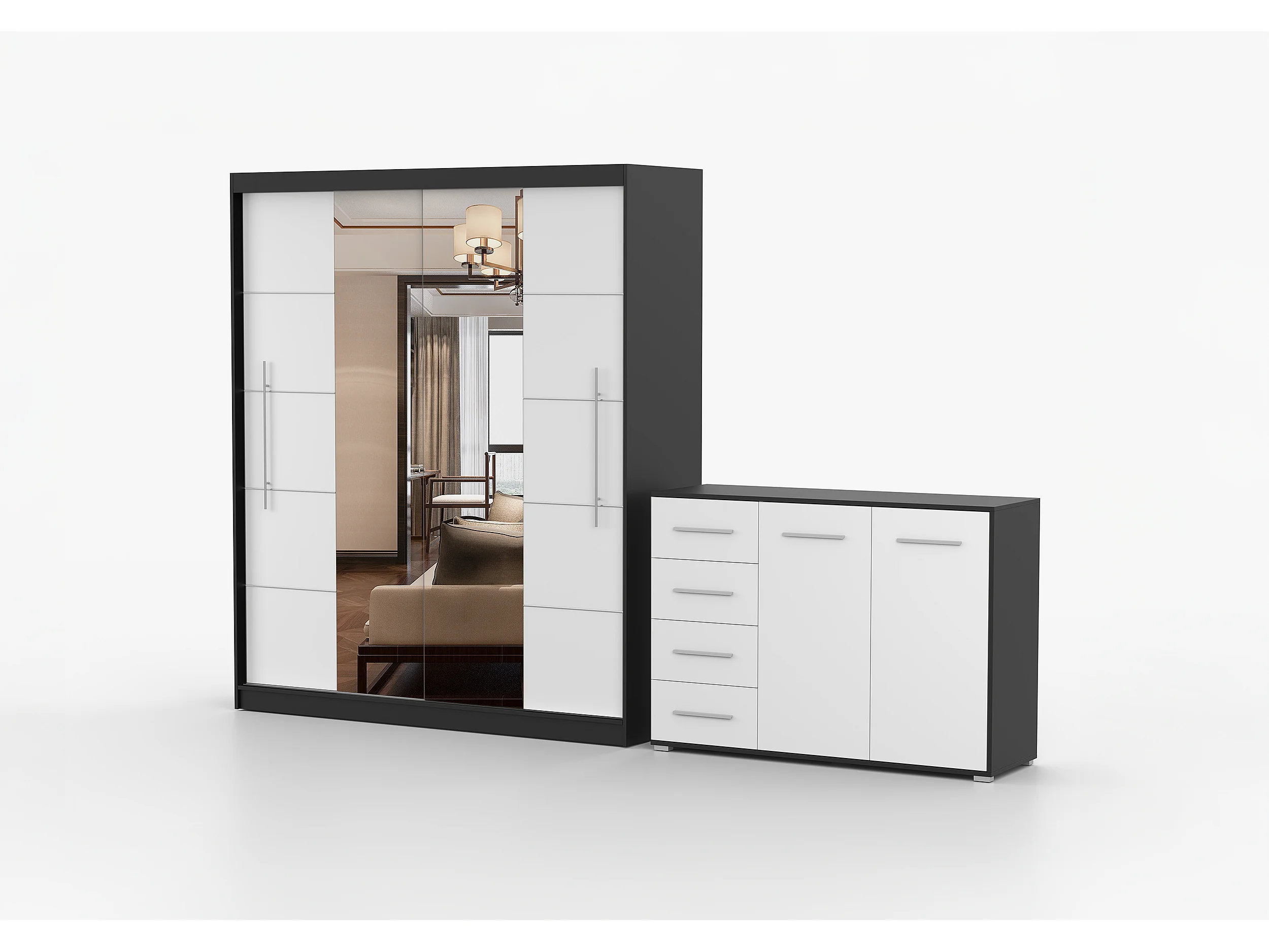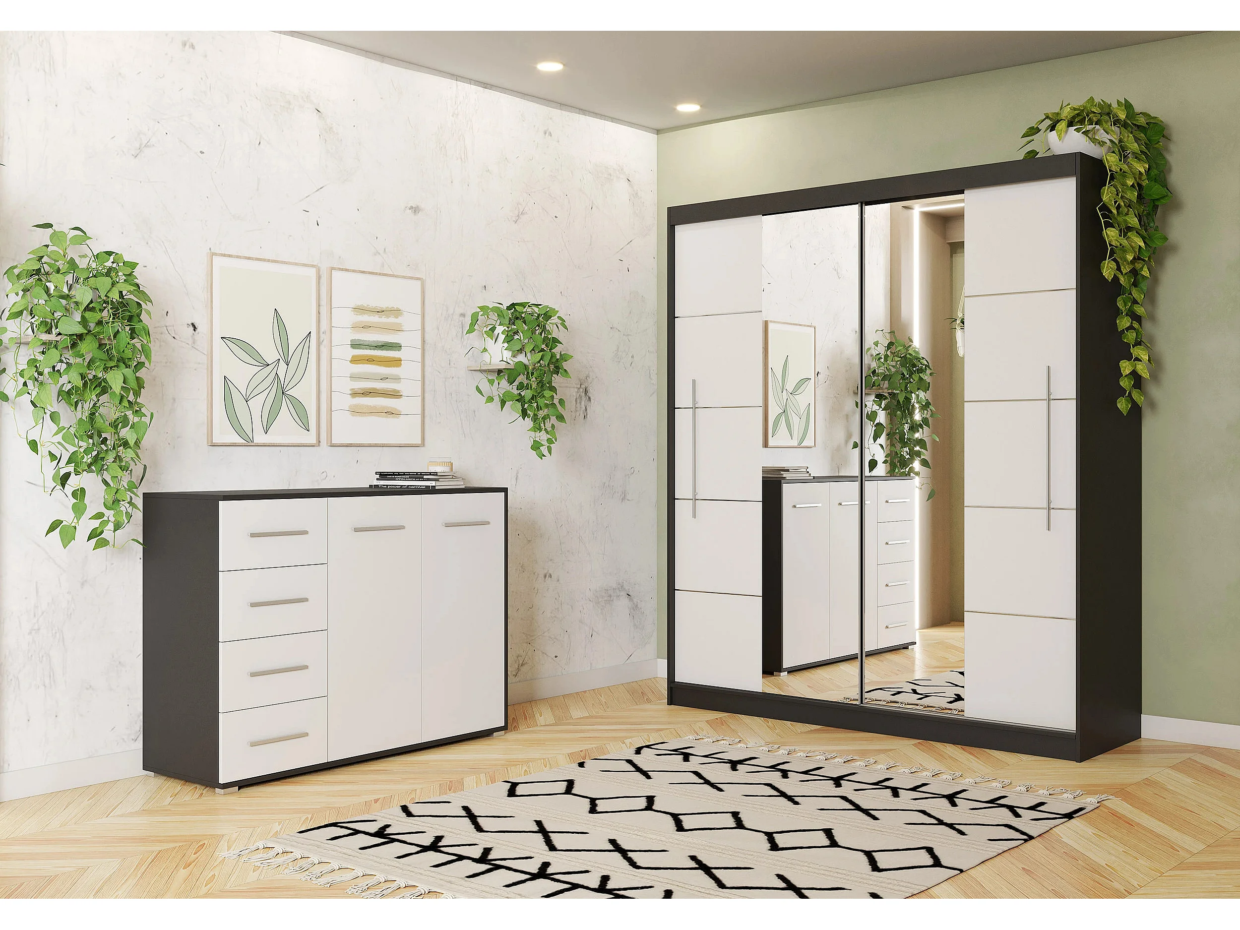 Ensemble armoire Orelia et commode Ilario avec miroir - Noir - Blanc