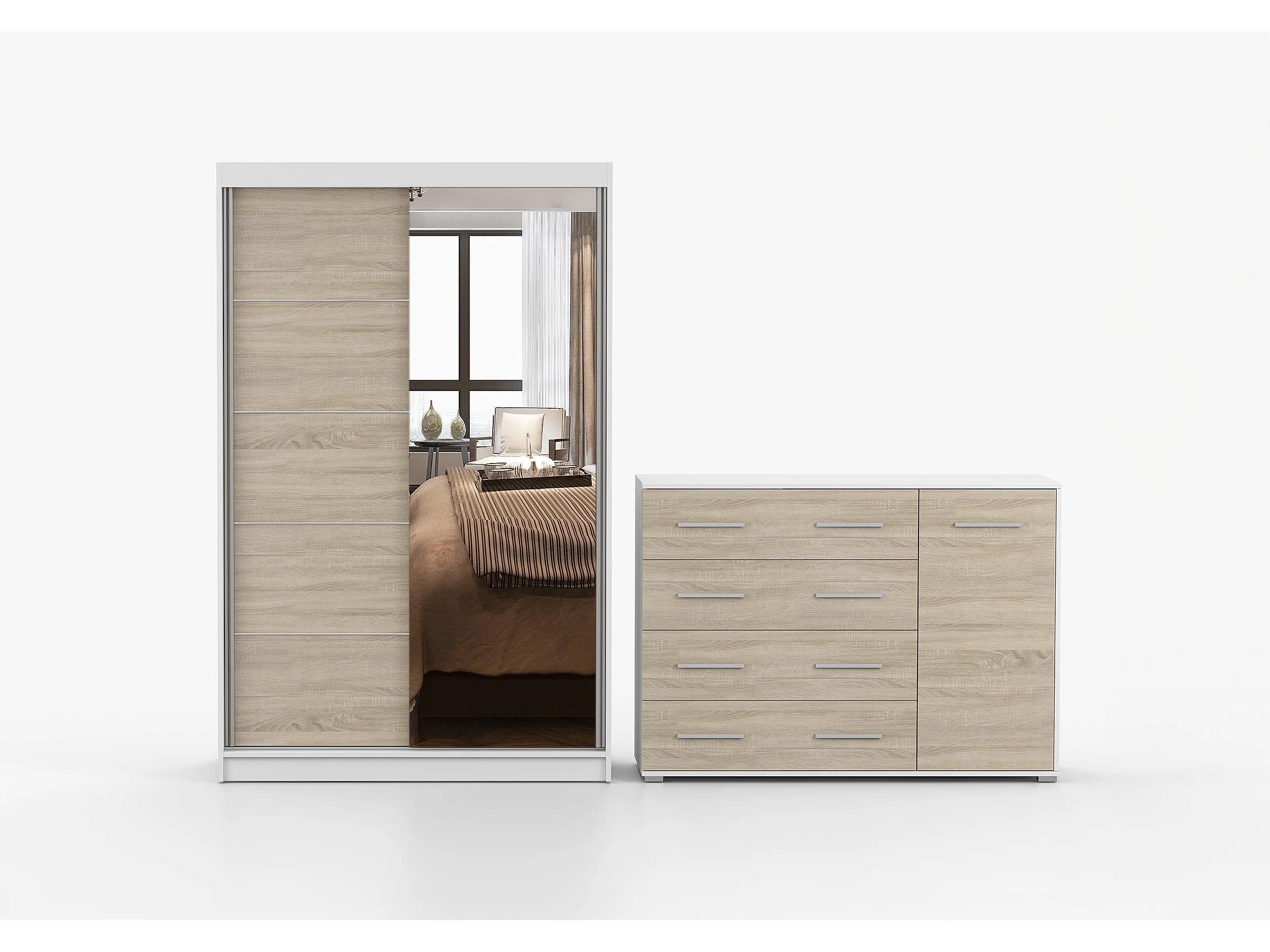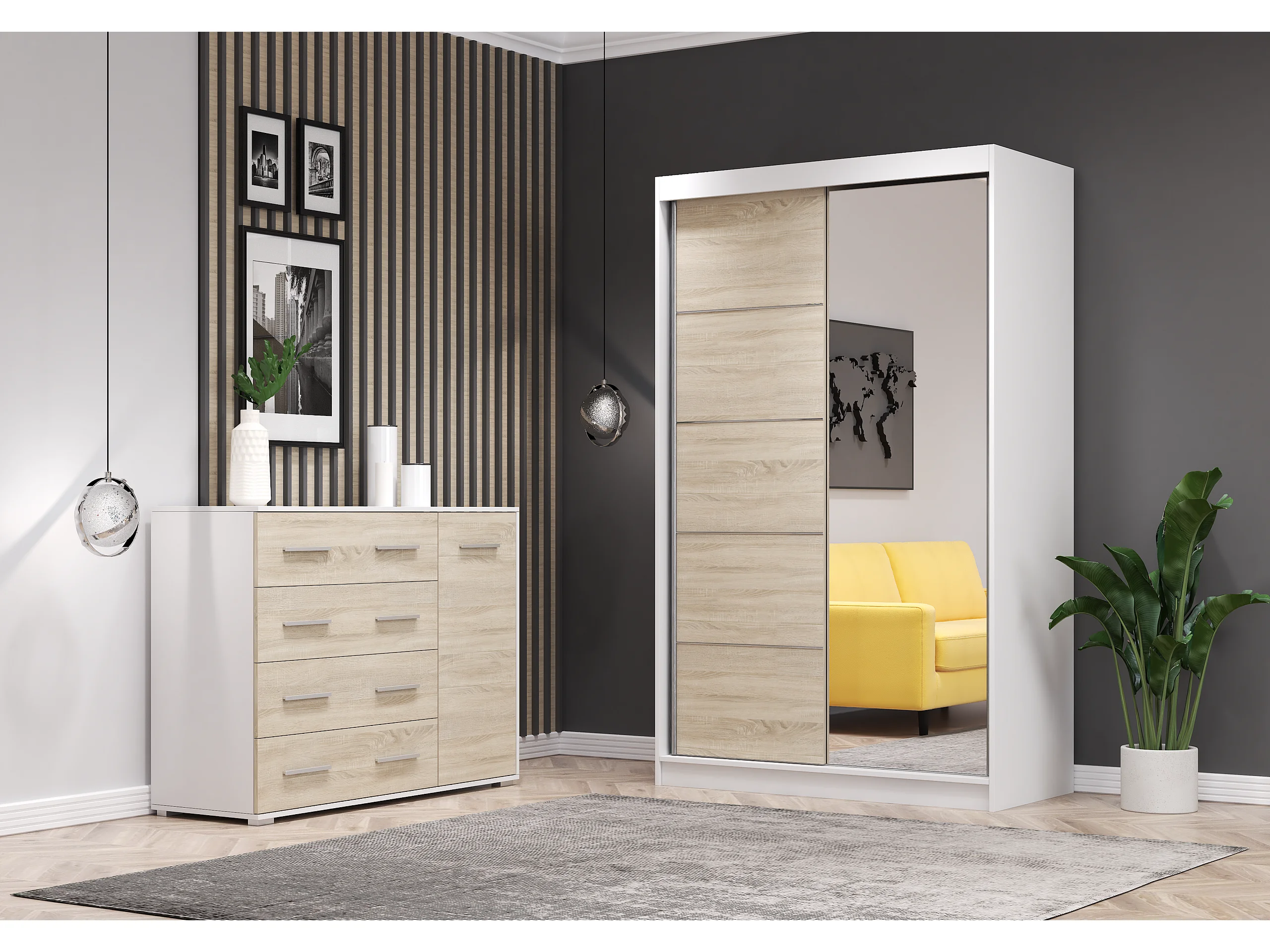 Ensemble armoire Syra et commode Ilario avec miroir - Blanc - Chêne