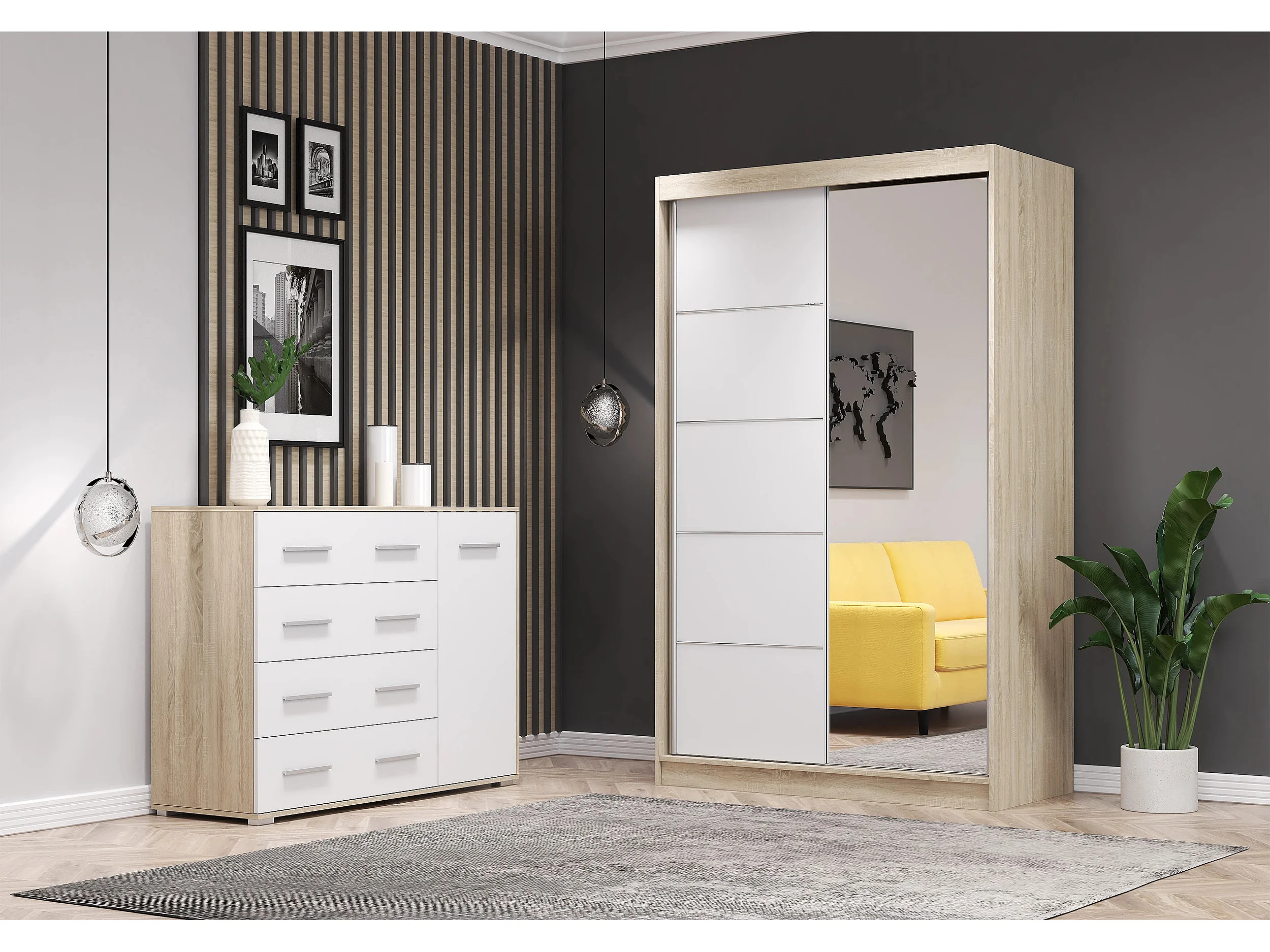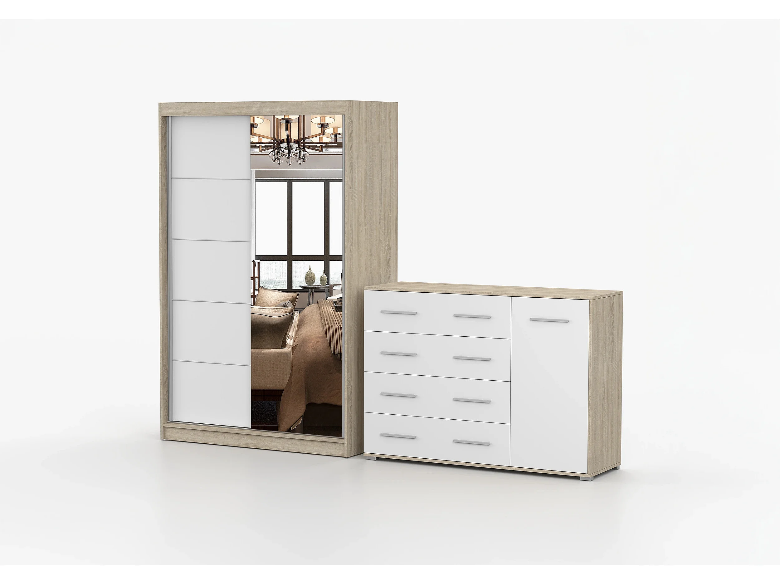 Ensemble armoire Syra et commode Ilario avec miroir - Chêne - blanc