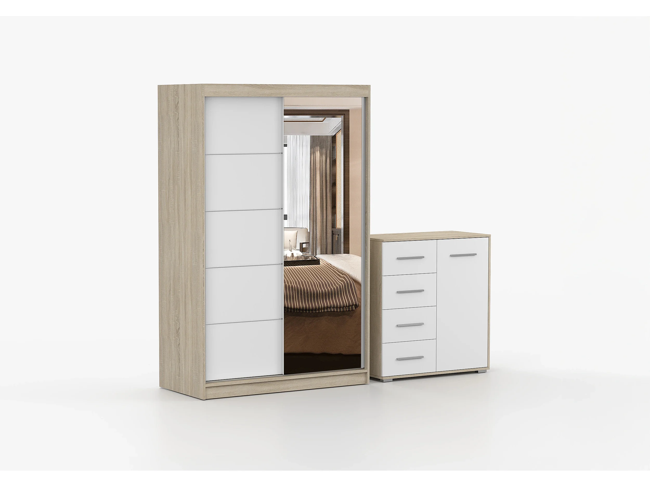 Ensemble armoire Syra et commode Ilario avec miroir - Chêne - Blanc