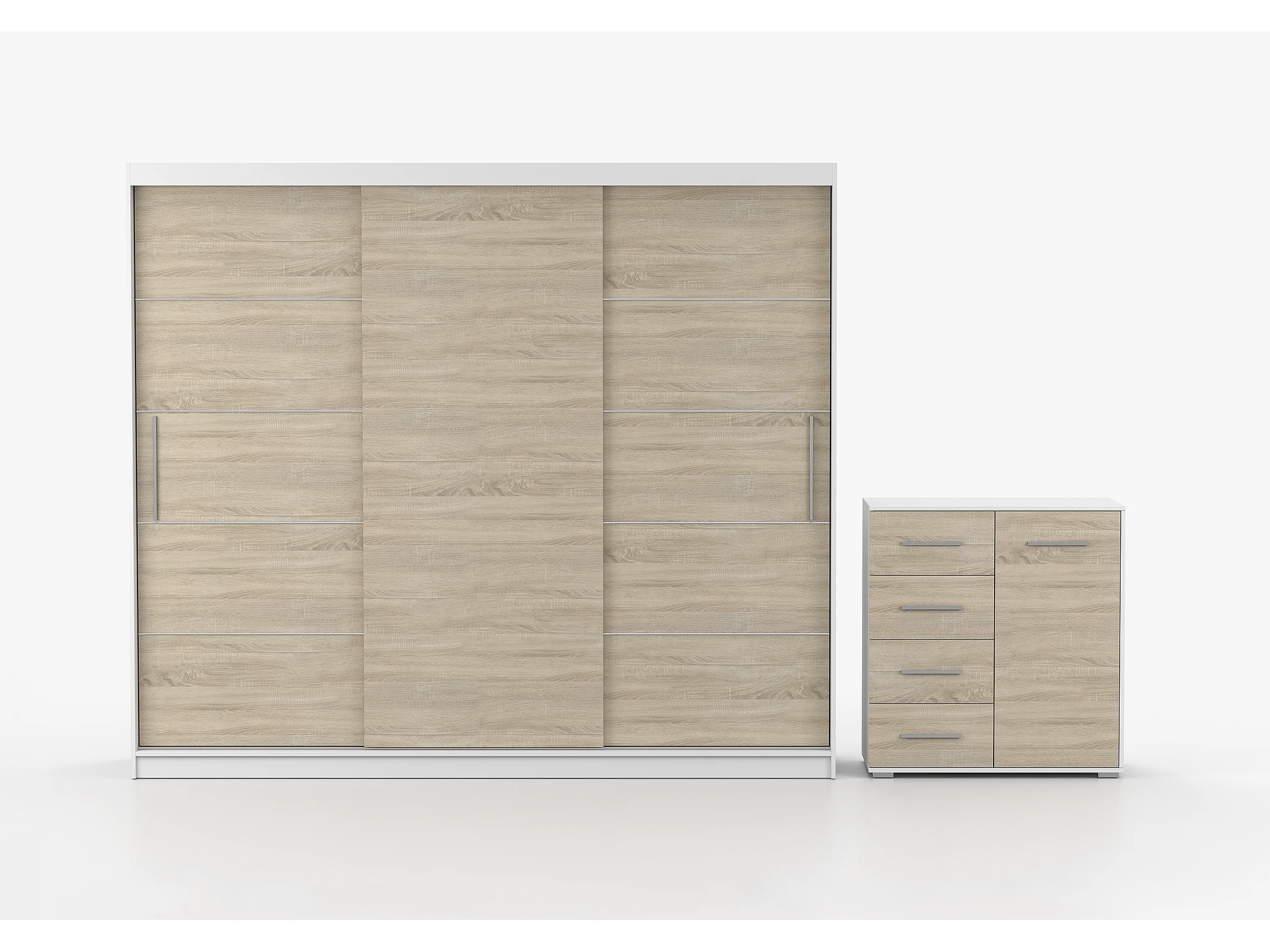Ensemble armoire Thalia avec commode Ilario - Blanc - Chêne