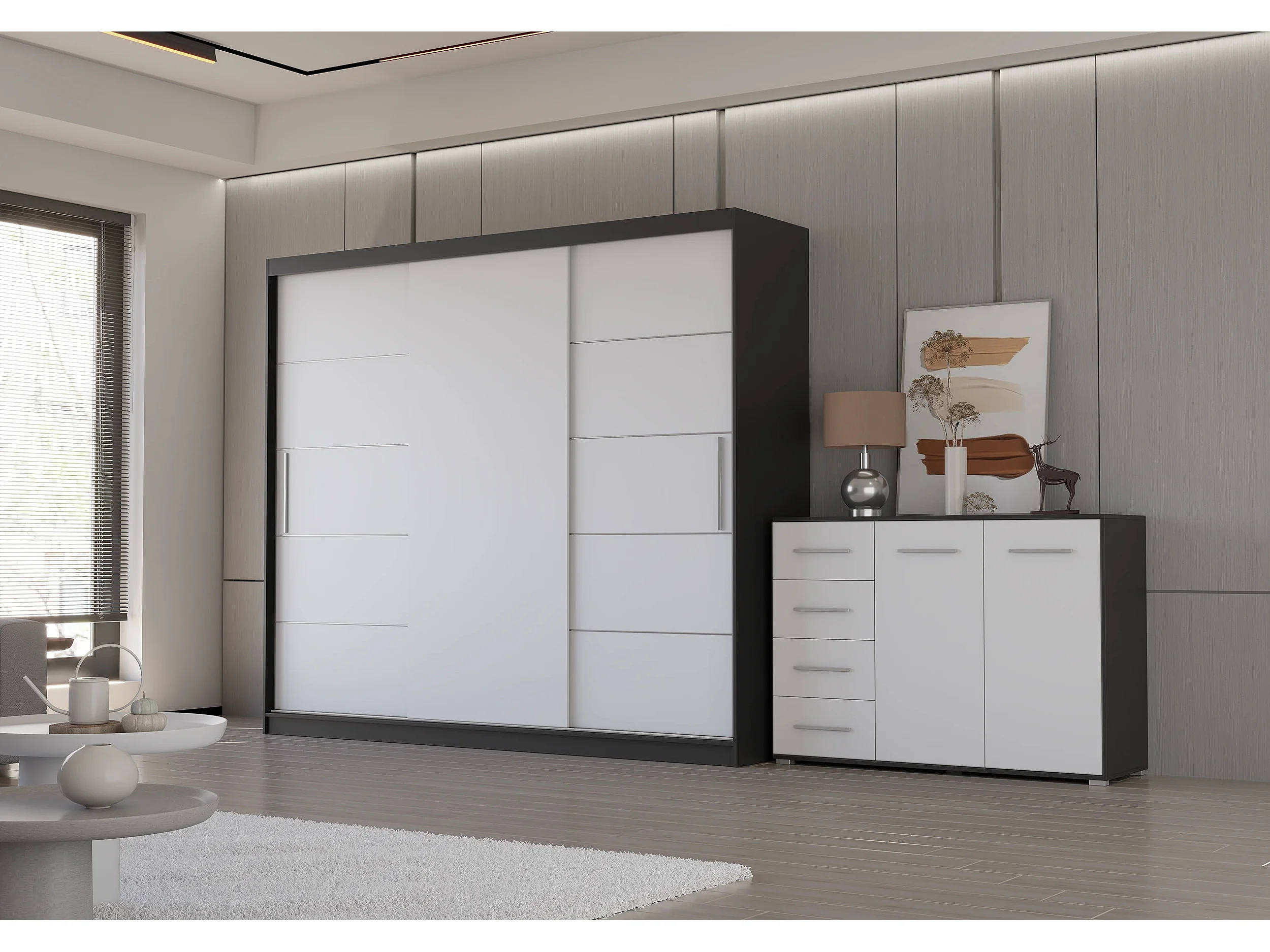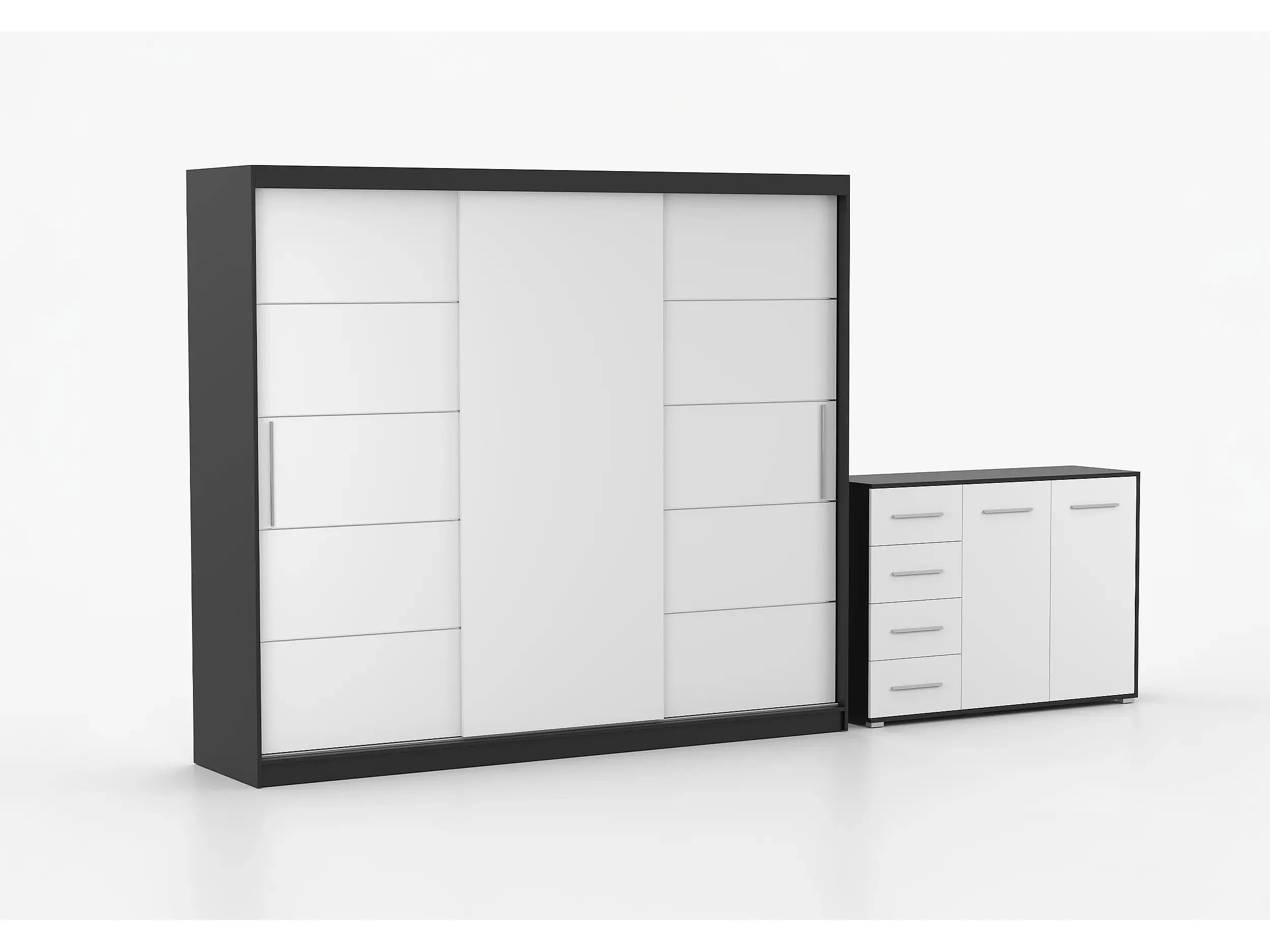 Ensemble armoire Thalia et commode Ilario - Noir - Blanc
