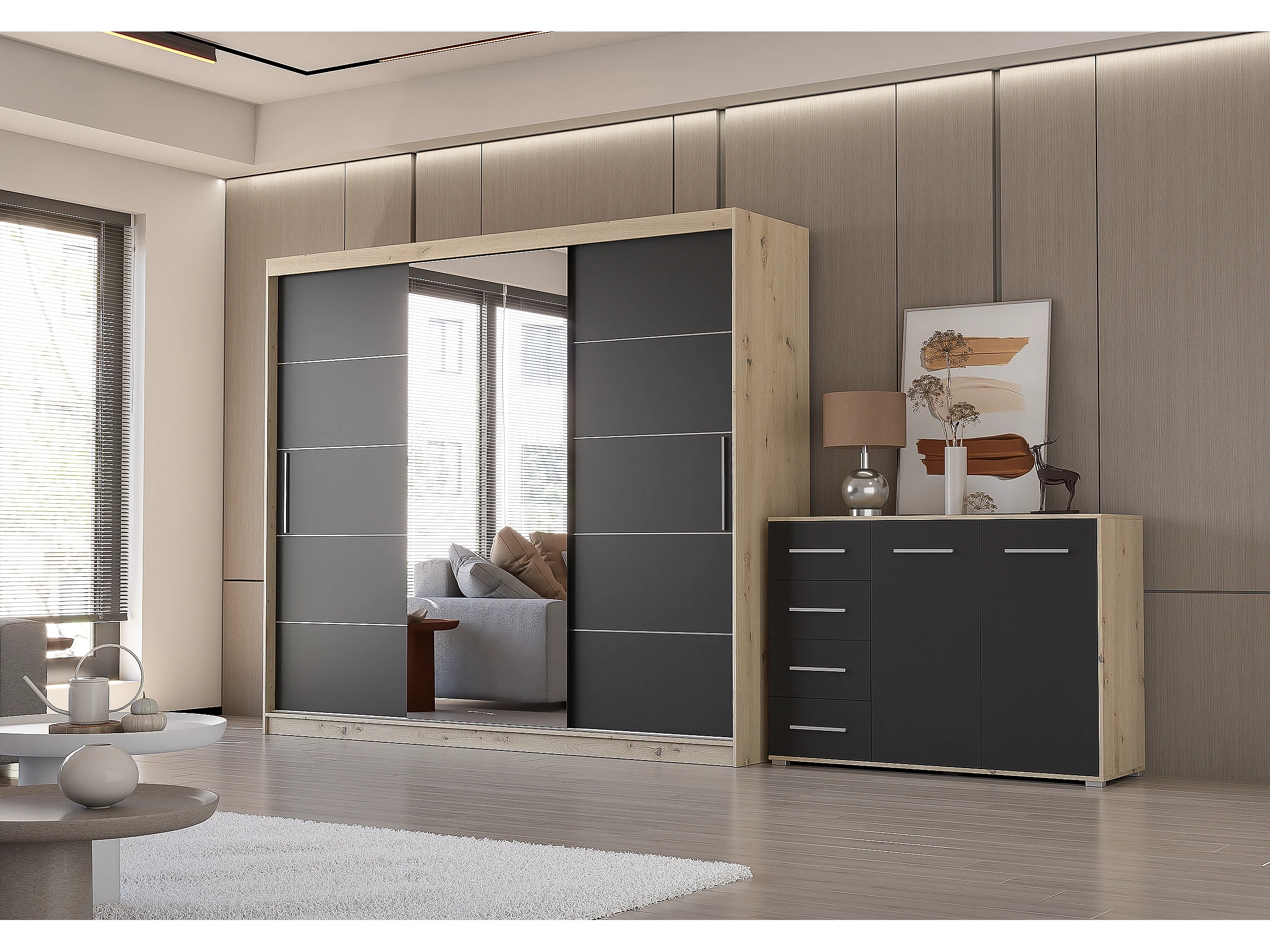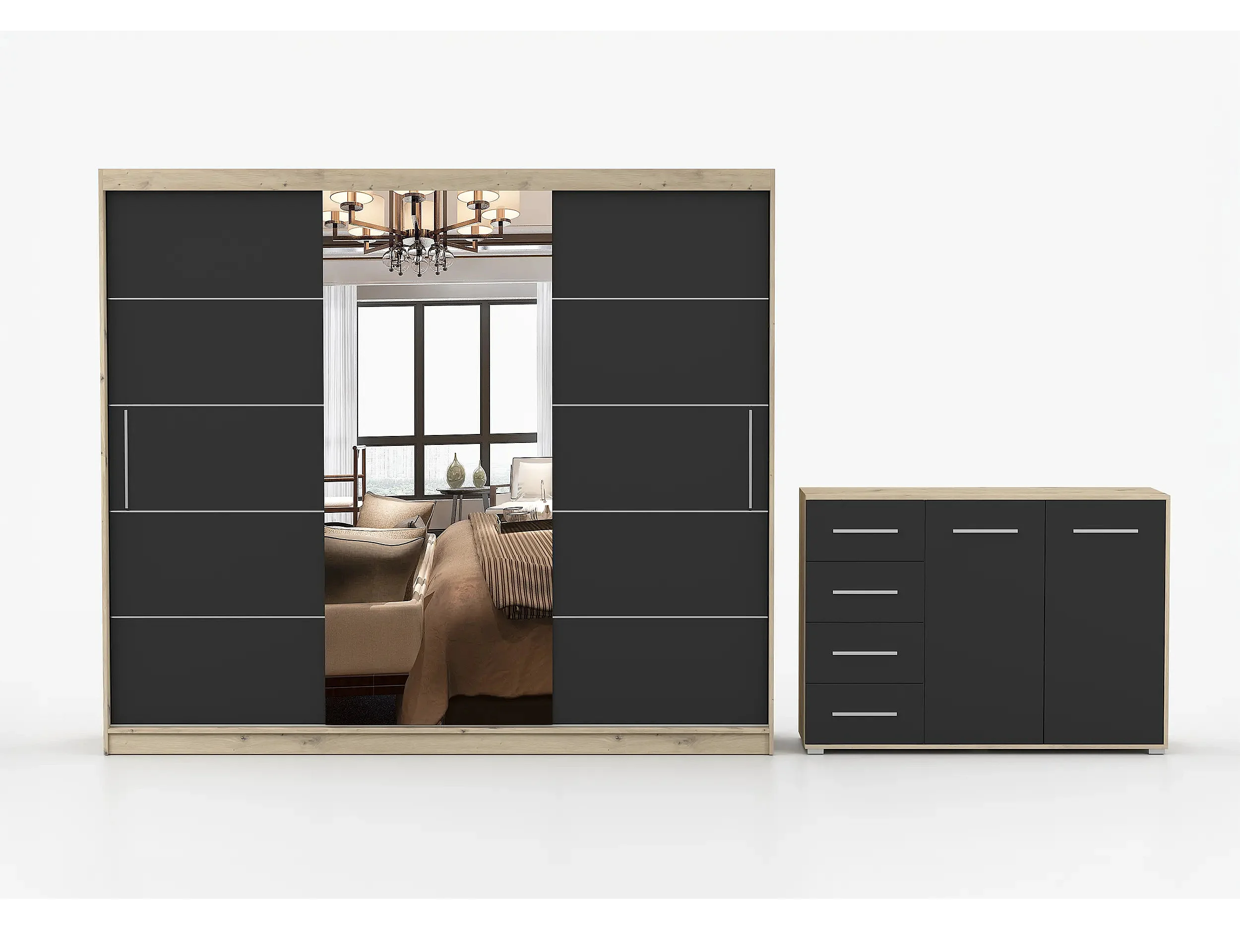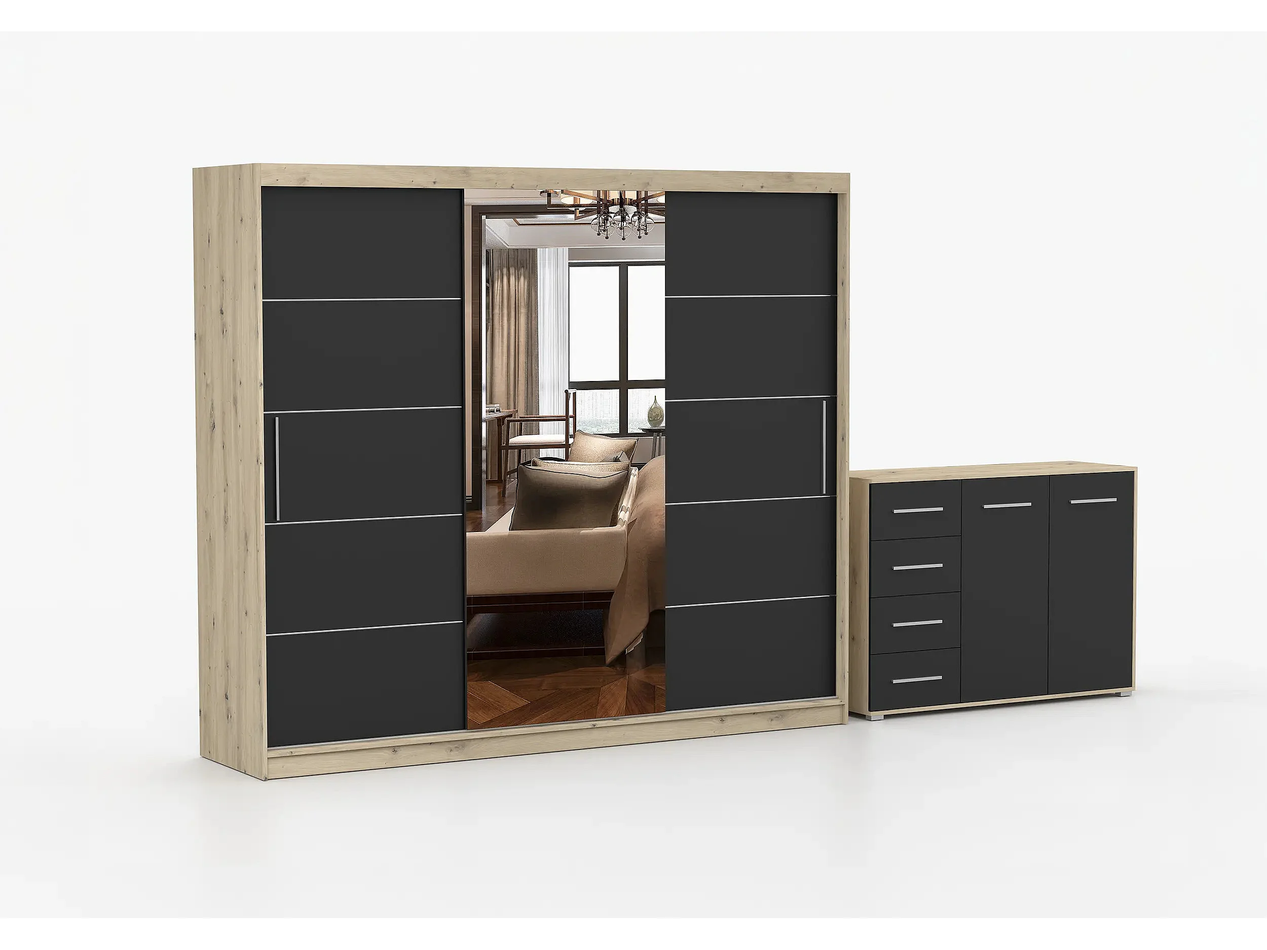 Ensemble armoire Theana et commode Ilario avec miroir - Artisan - Noir