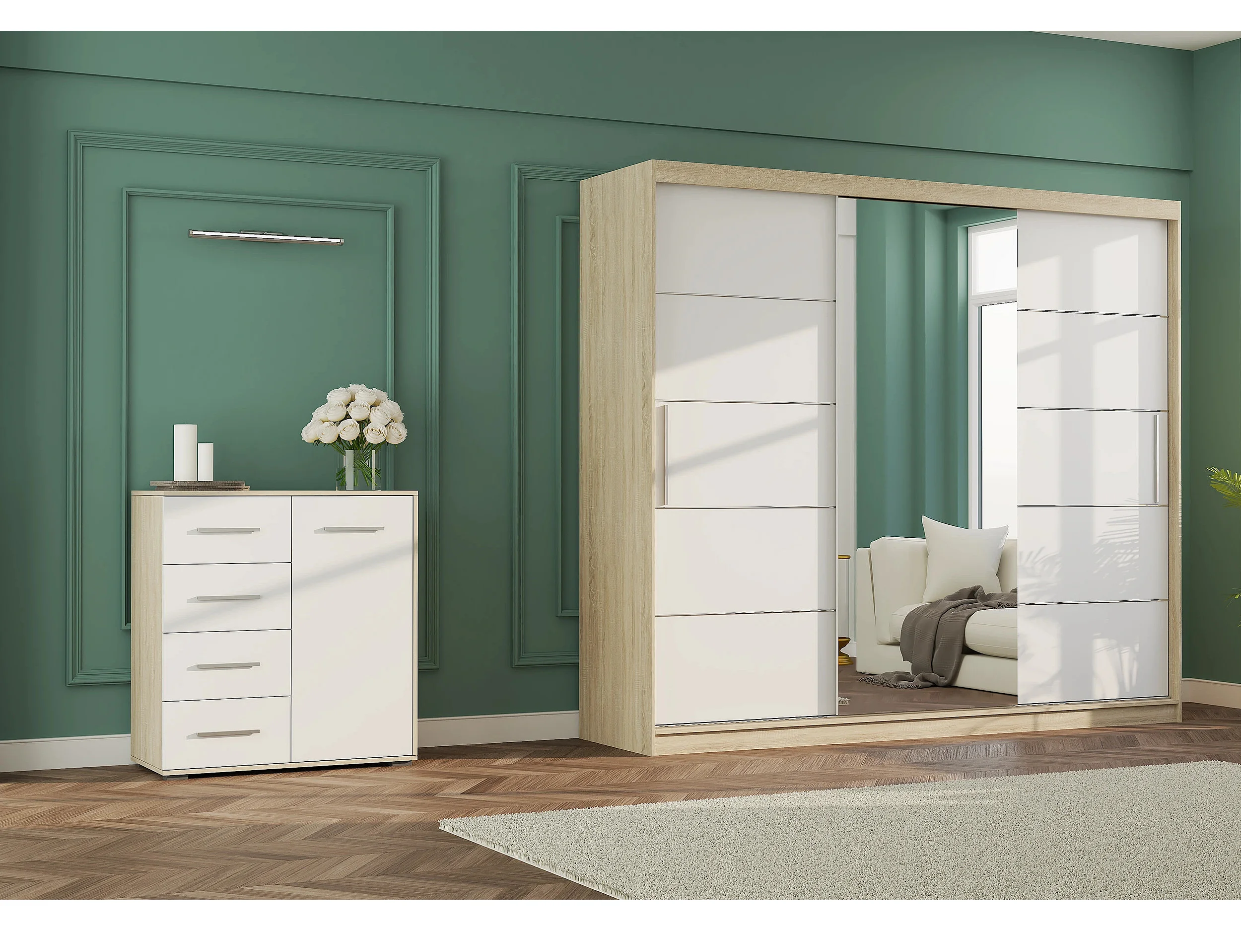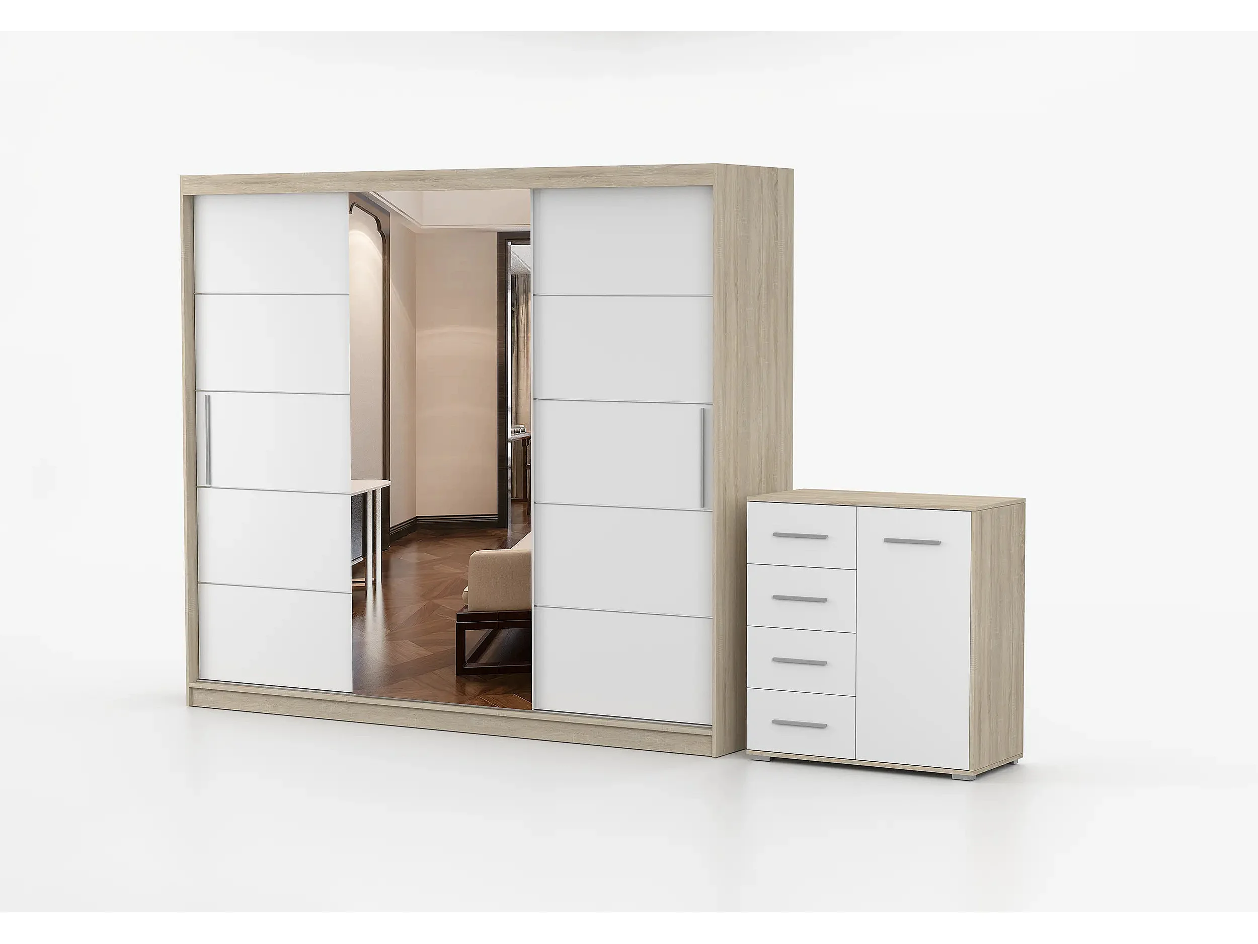 Ensemble armoire Theana et commode Ilario avec miroir - Chêne - Blanc