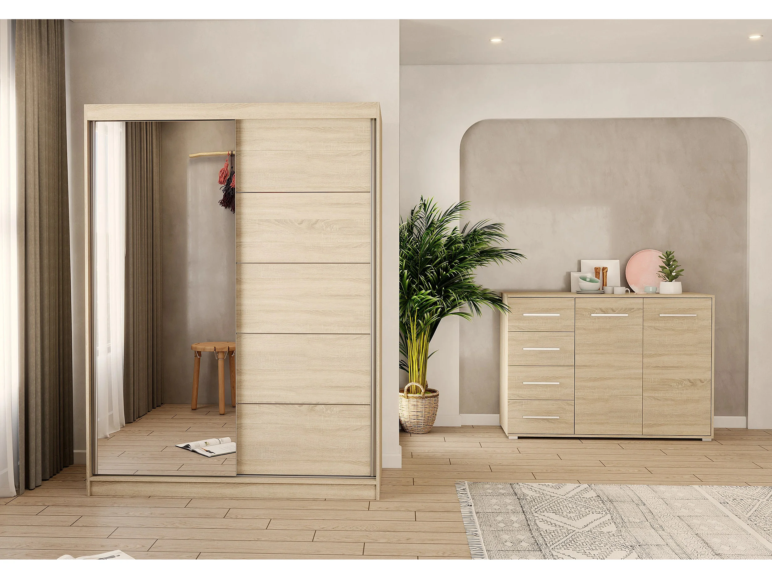 Ensemble armoire Vaiana et commode Ilario avec miroir - Chêne