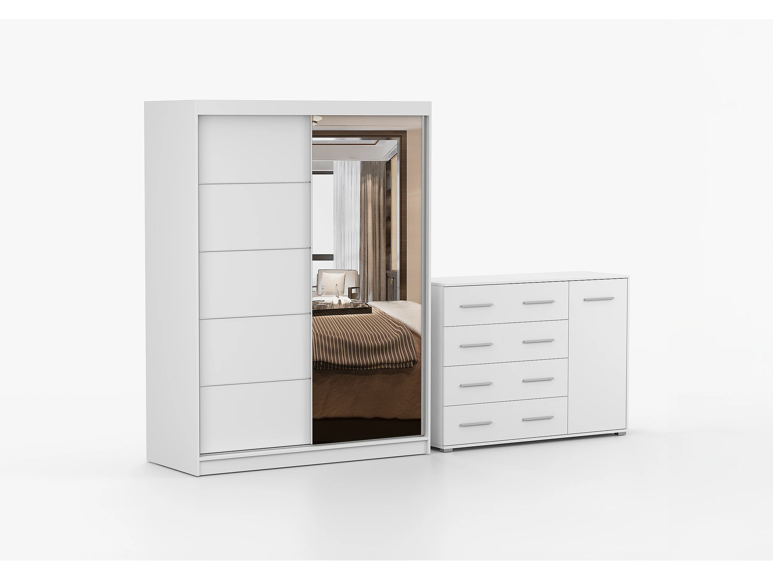 Ensemble armoire Vaiana et commode Ilario Chêne - Blanc avec miroir - Blanc