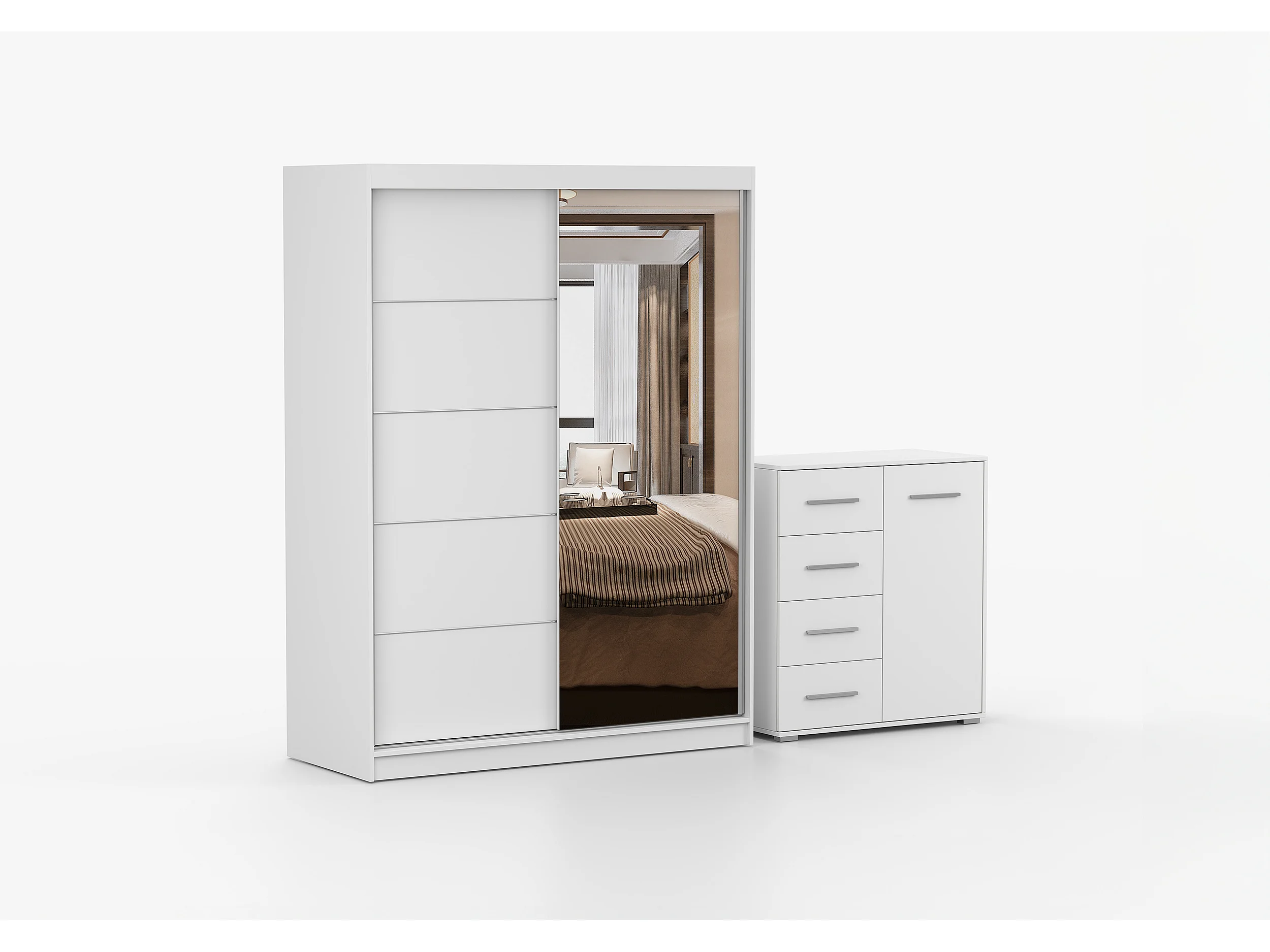 Ensemble armoire Vaiana et commode Ilario Chêne - Blanc avec miroir - Blanc