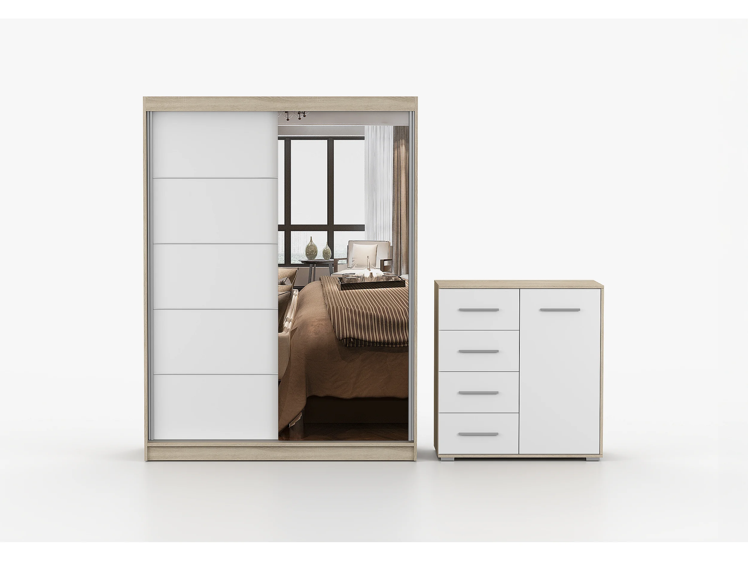 Ensemble armoire Vaiana et commode Ilario Chêne - Blanc avec miroir - Chêne - Blanc