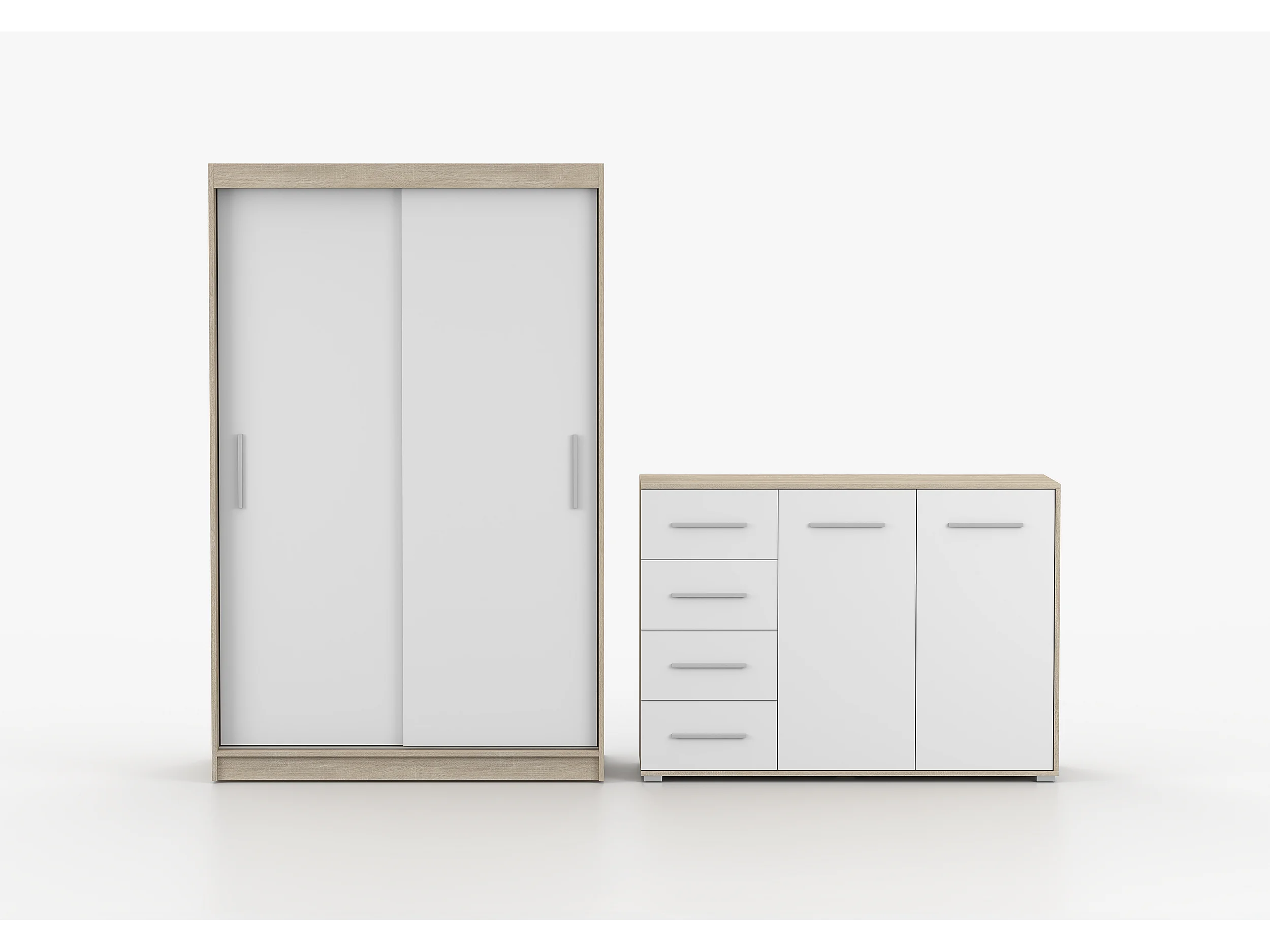 Ensemble armoire Yvae et commode Ilario - Chêne - Blanc