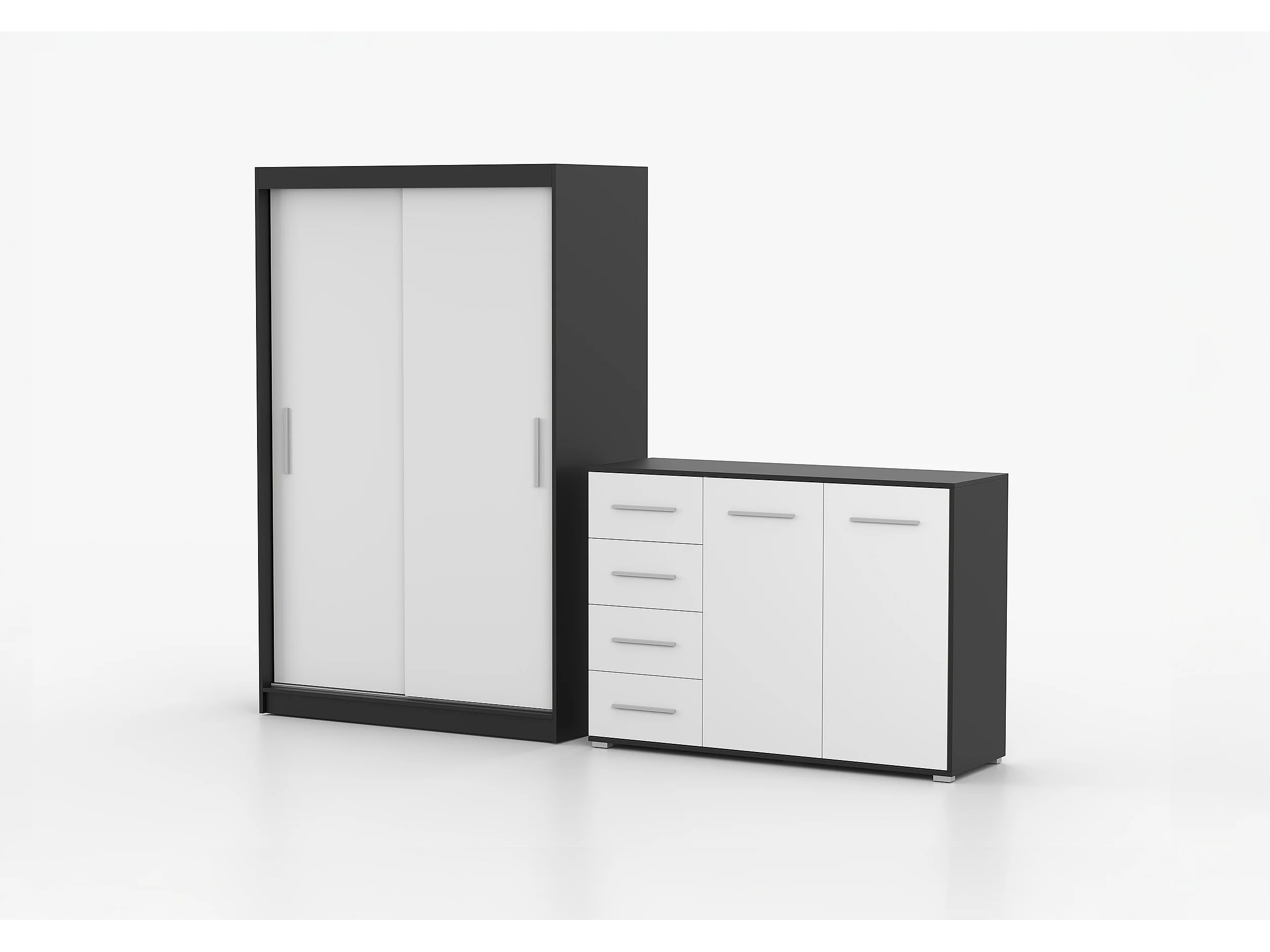 Ensemble armoire Yvae et commode Ilario - Noir - Blanc
