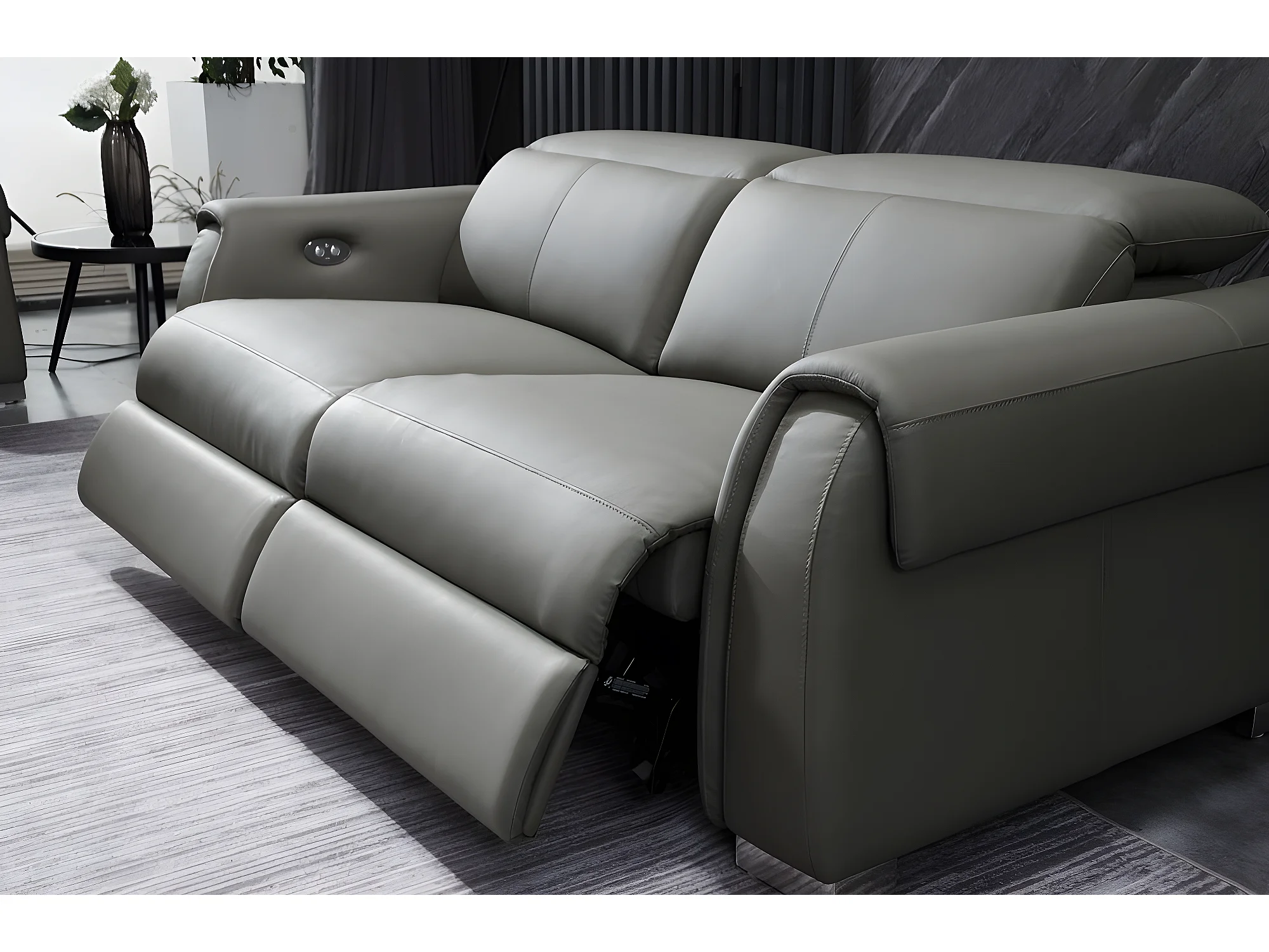 Ensemble avec 4 relax électriques, 2 canapés 2 places en cuir italien buffle TOPRELAX, gris foncé
