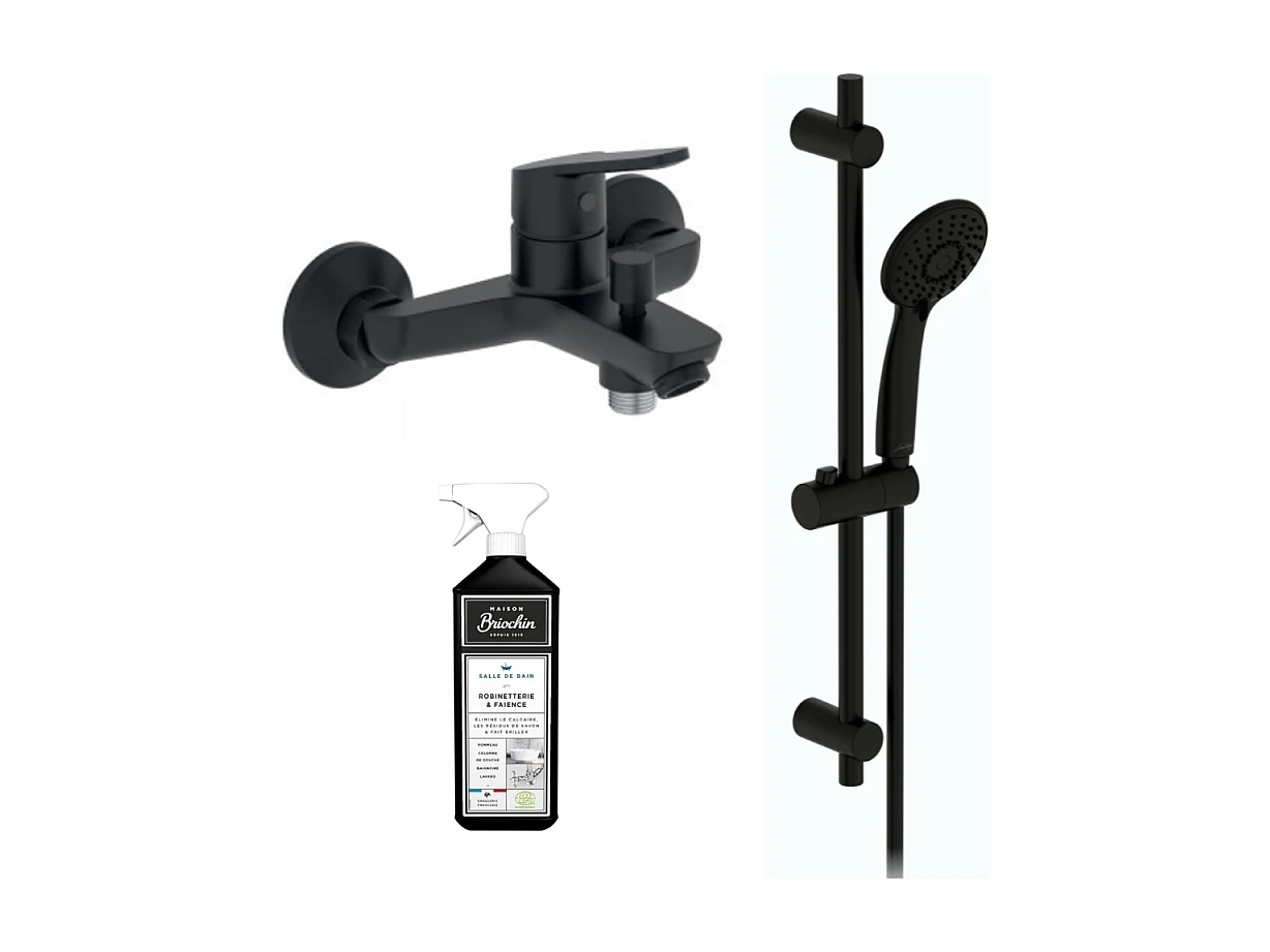 Ensemble bain douche avec mitigeur mécanique mural JACOB DELAFON Aimé noir + nettoyant