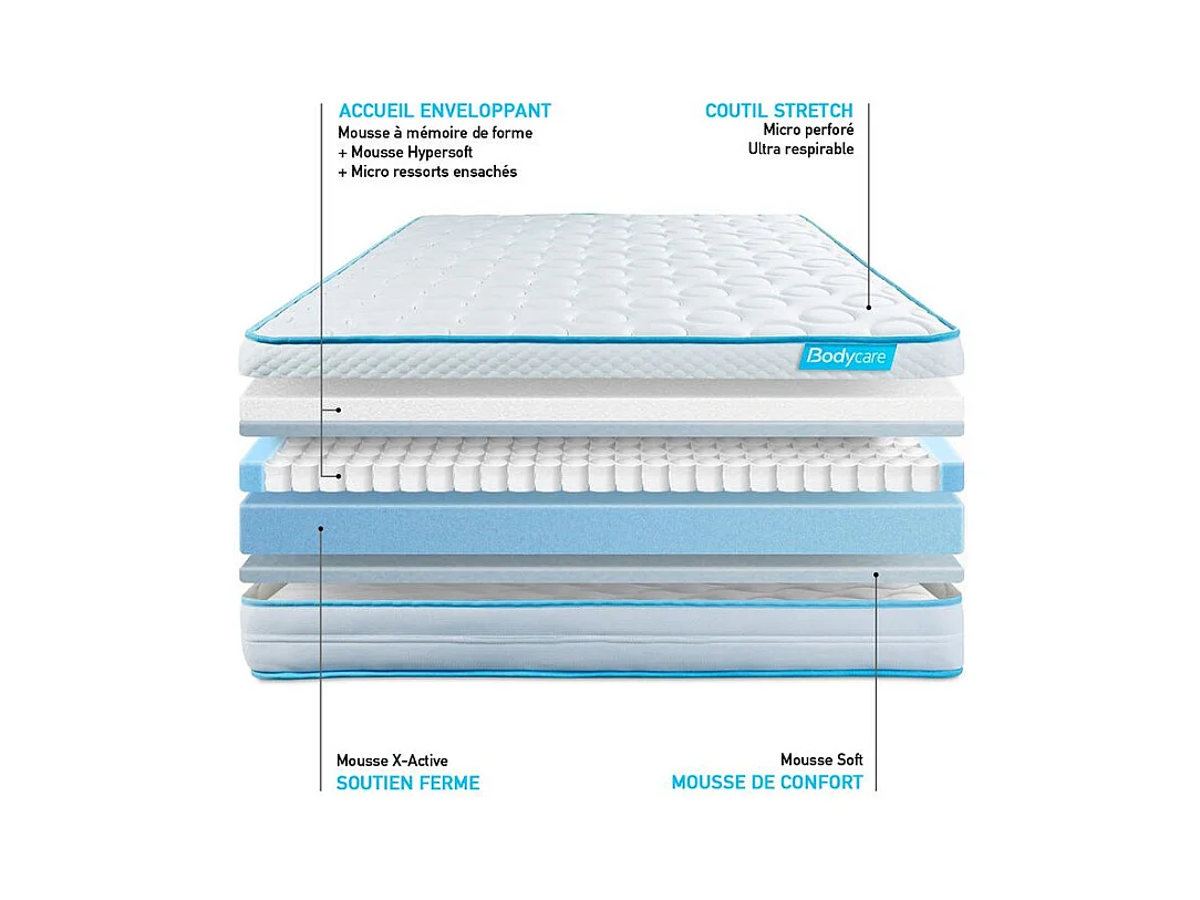 Ensemble BIOCARE 90x200x26 Mousse à mémoire de forme BIO 5 zones, maxi épaisseur