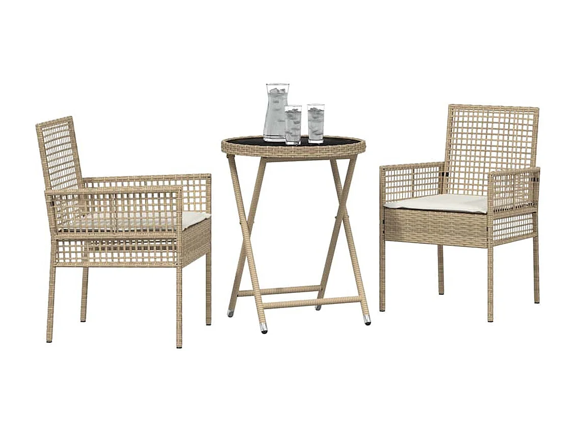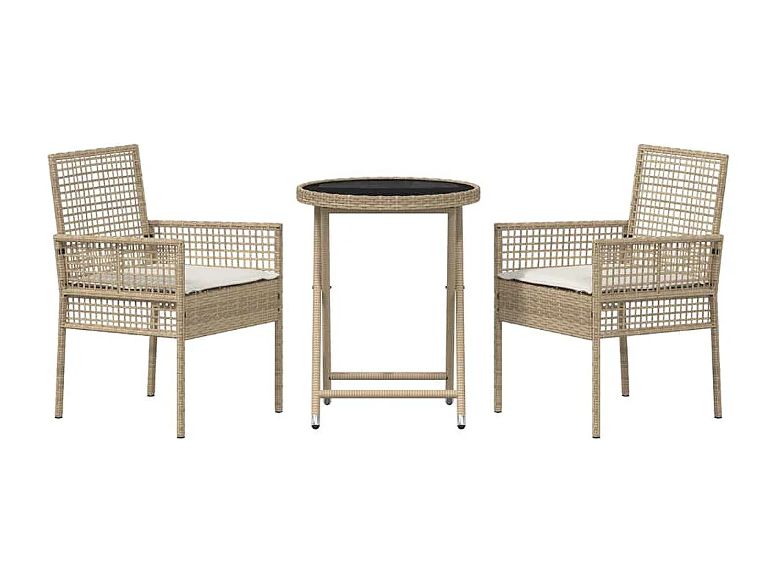 Ensemble bistro de jardin 3 pièces Beige polyrotin