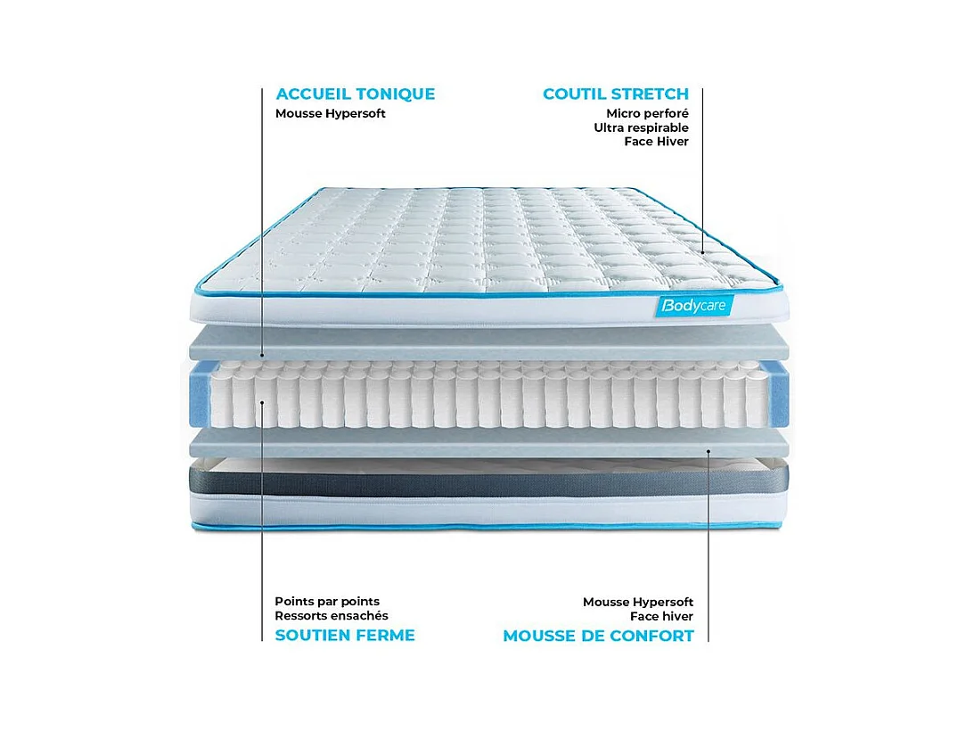Ensemble BODYZONE 90×190 Ressorts ensachés 3 zones Ultra épaisseur
