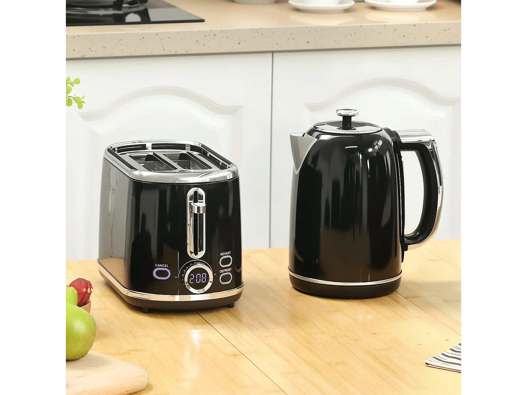 Ensemble bouilloire et grille-pain Vintage - 1,7L 2200W - 2 tranches, brunissage 6 niv. - gris métal noir