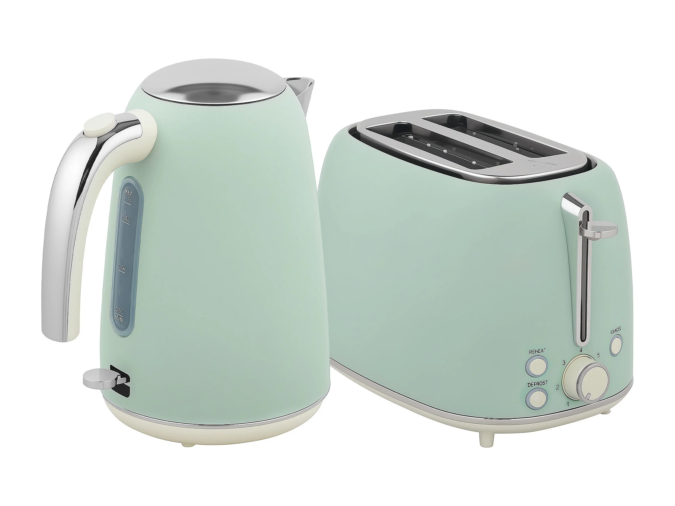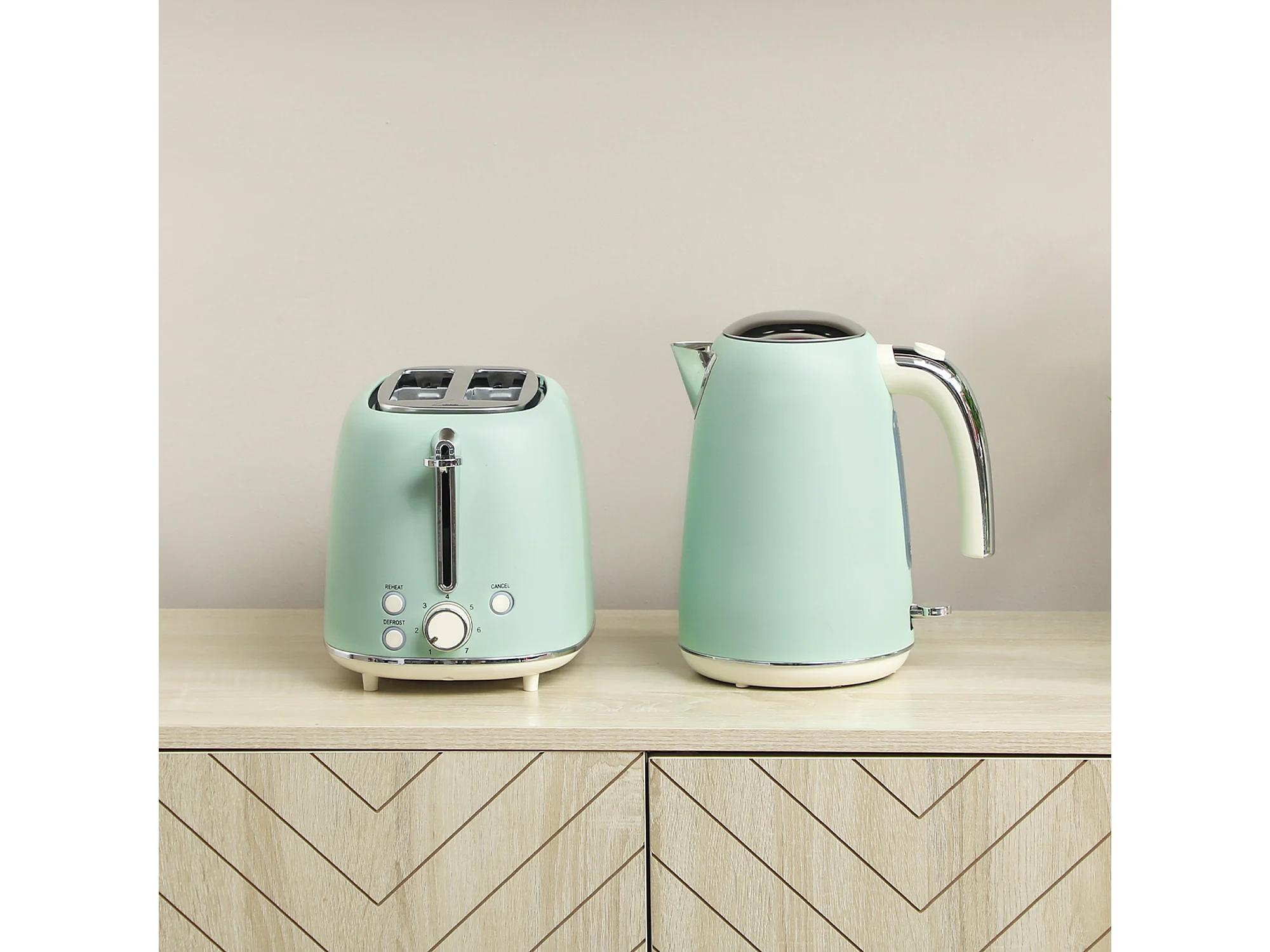 Ensemble bouilloire et grille-pain vintage - 1,7L 2200W - 2 tranches, brunissage 7 niv. - vert d'eau