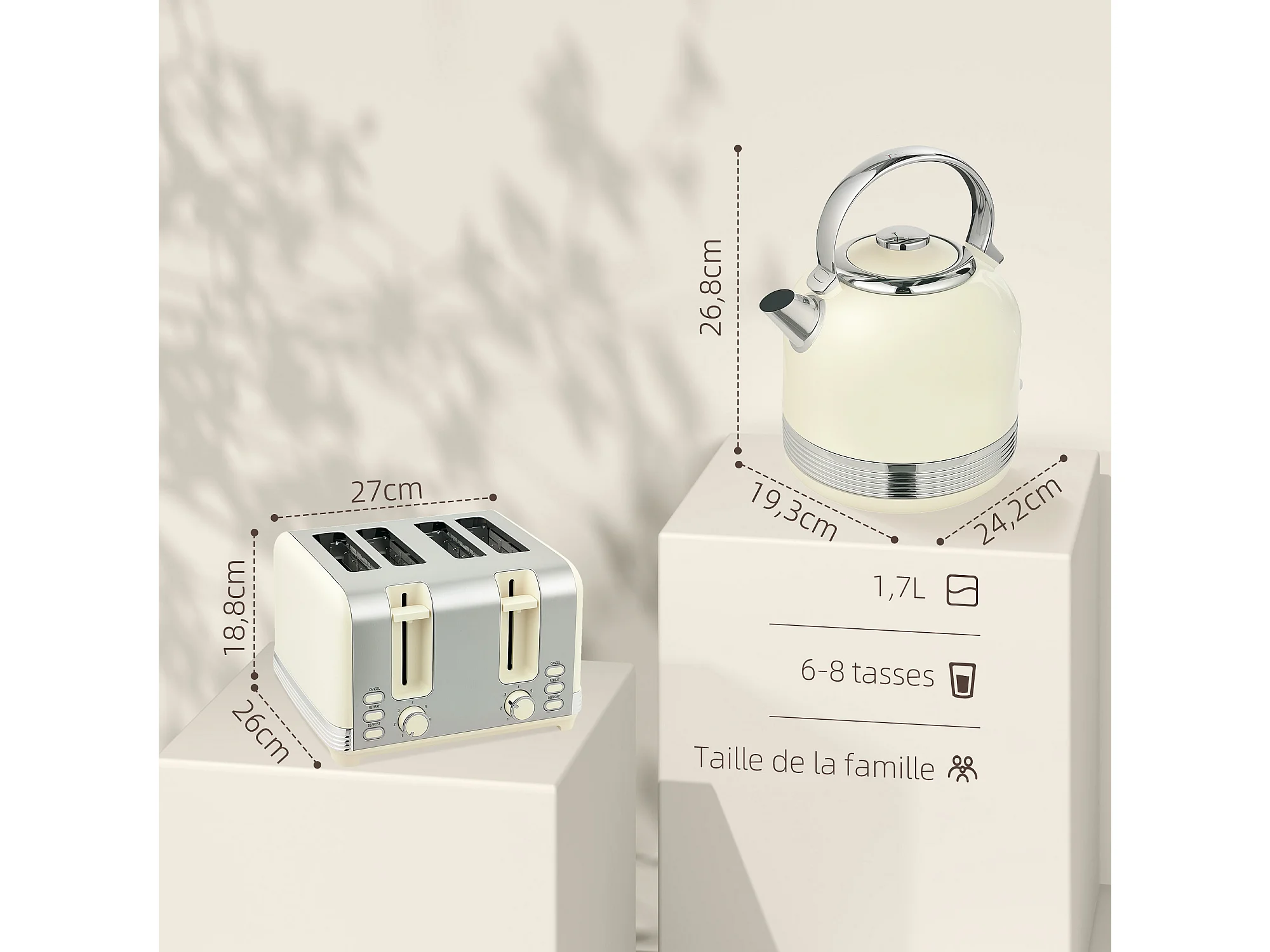Ensemble bouilloire et grille-pain Vintage - 1,7L 2200W - 4 tranches, brunissage 7 niv. - crème