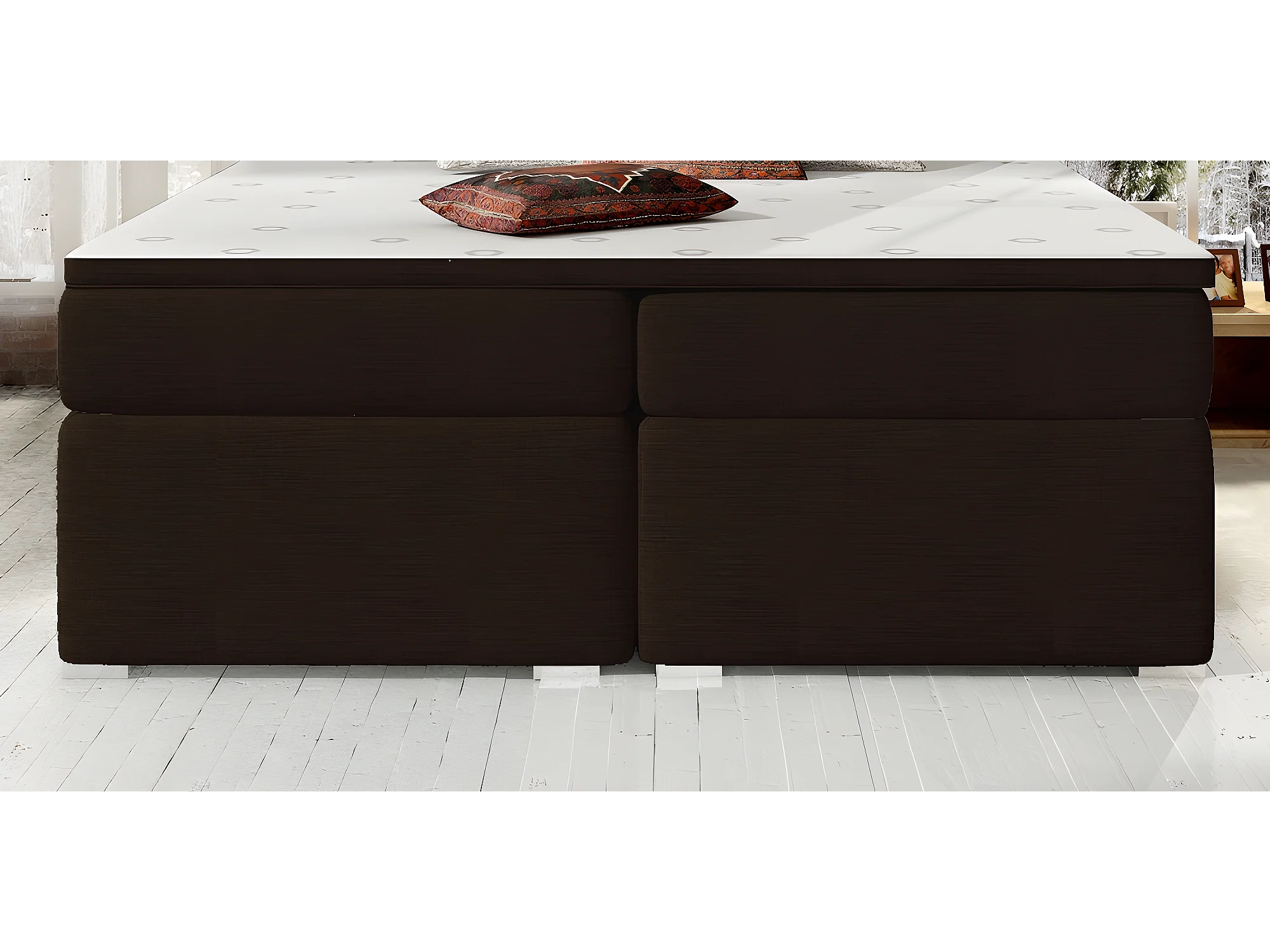 Ensemble boxspring complet tête de lit + sommiers + matelas + surmatelas BORIS de VENESETTI - tissu luxe chocolat - 140x200 cm