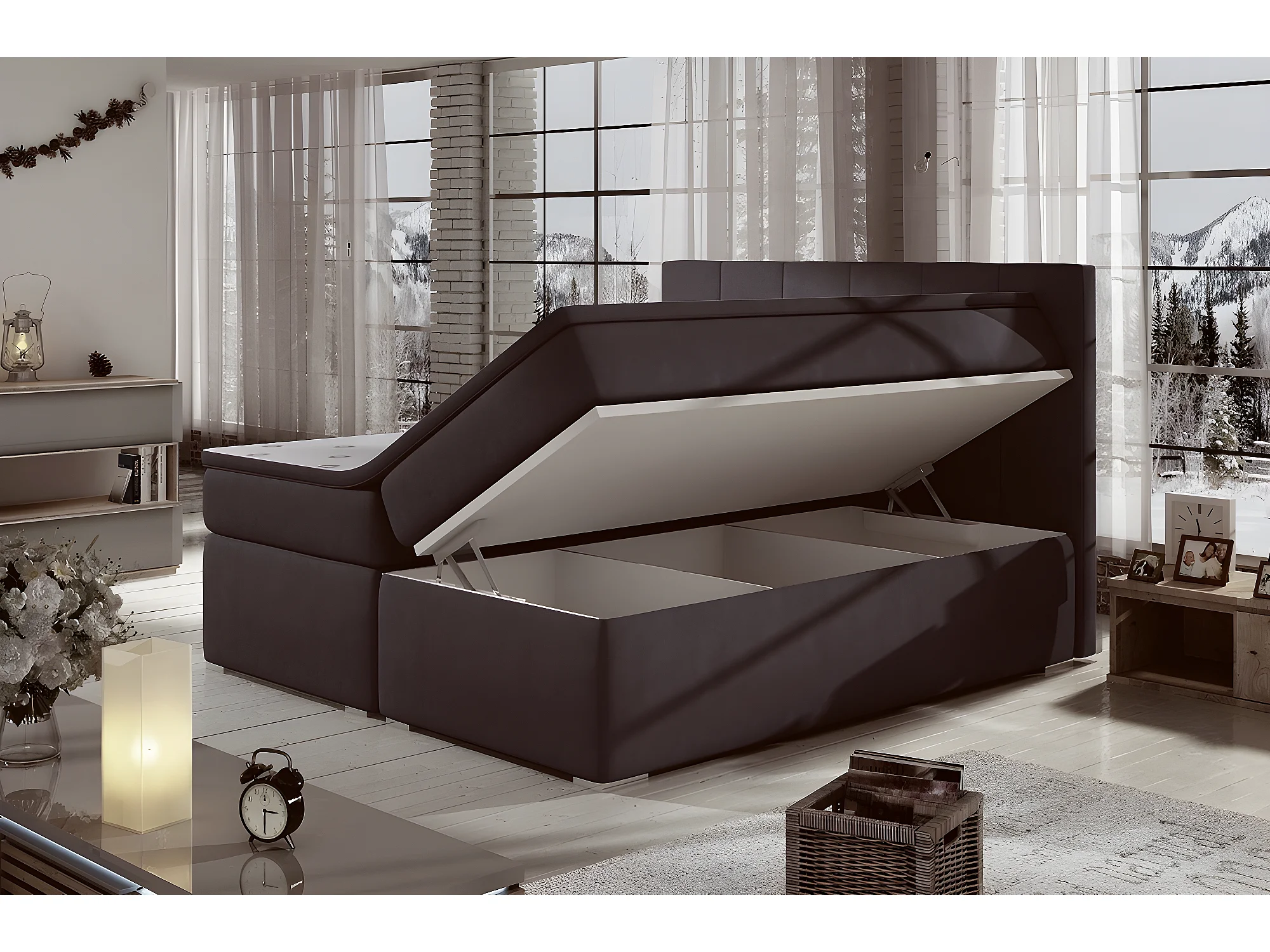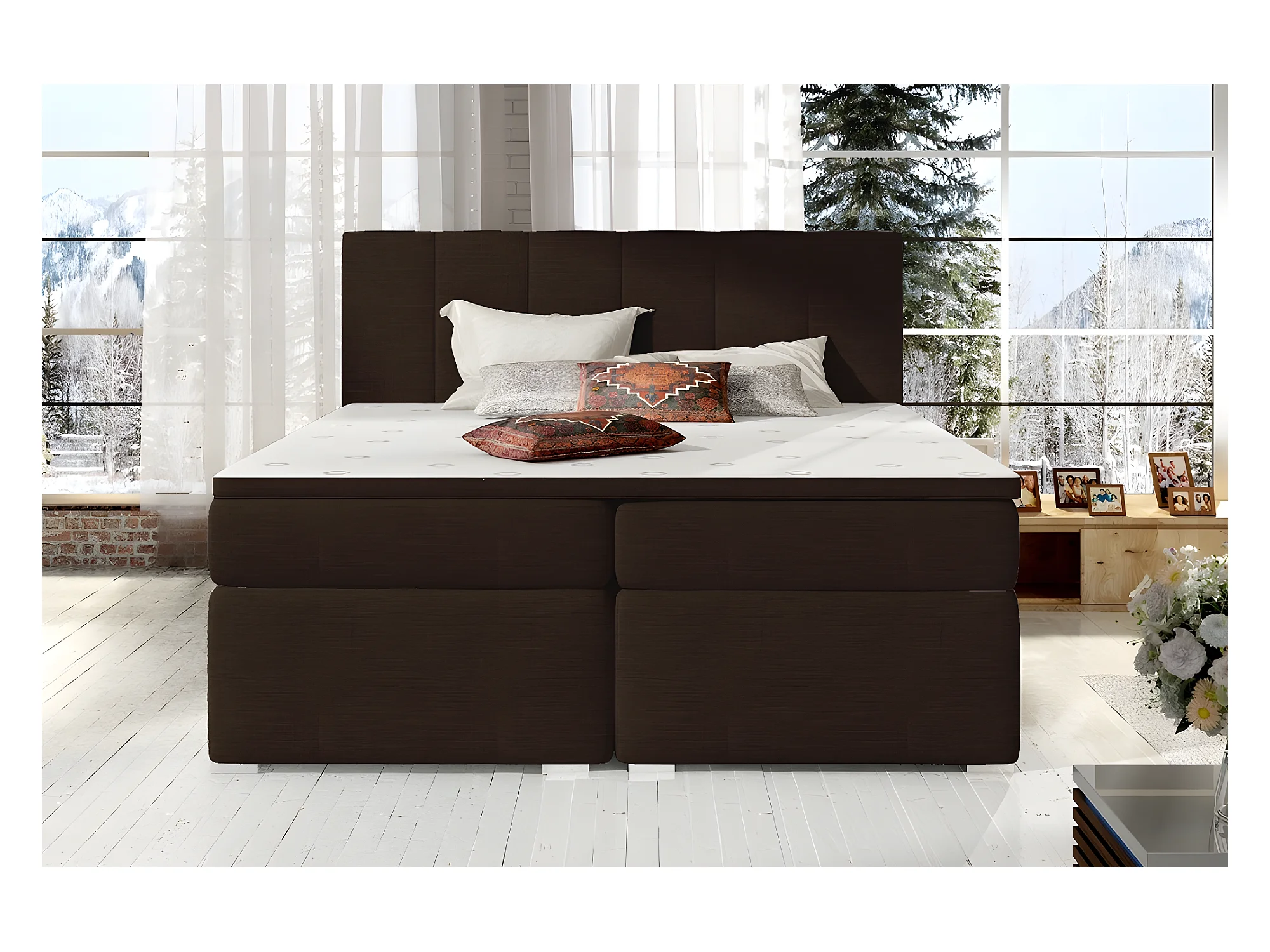 Ensemble boxspring complet tête de lit + sommiers + matelas + surmatelas BORIS de VENESETTI - tissu luxe chocolat - 180x200 cm