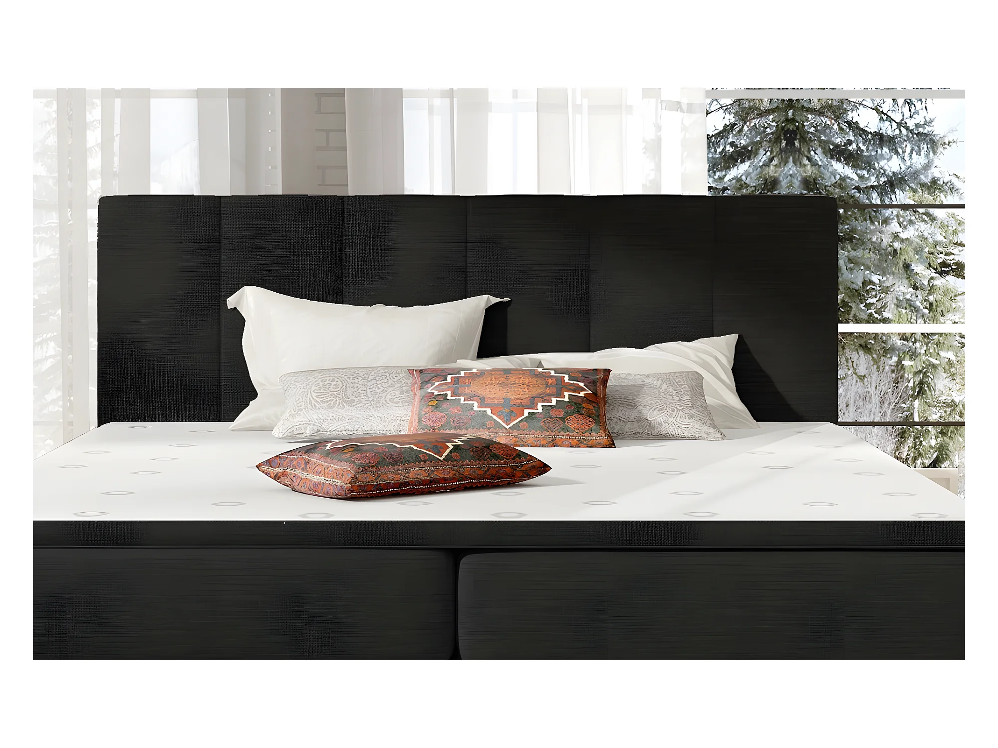 Ensemble boxspring complet tête de lit + sommiers + matelas + surmatelas BORIS de VENESETTI - tissu luxe noir - 140x200 cm
