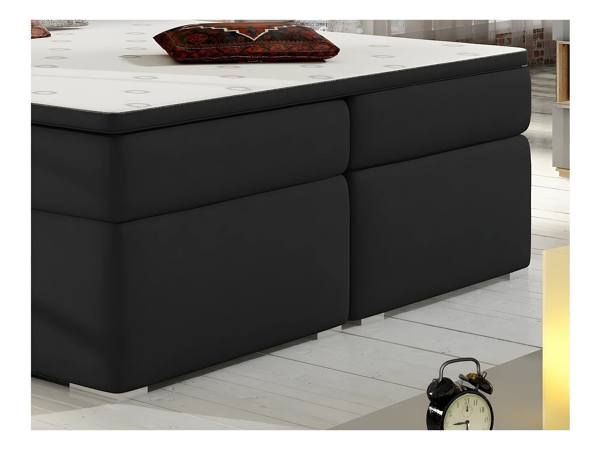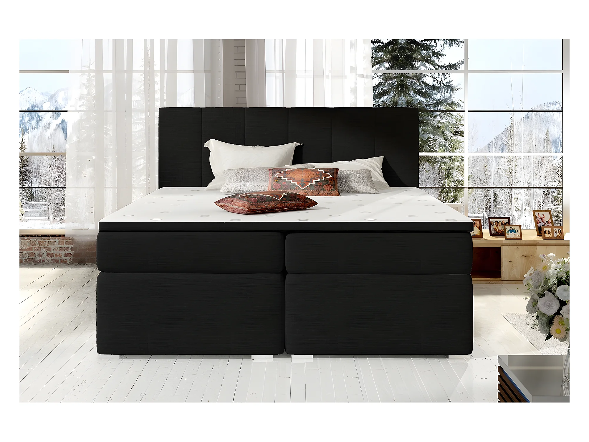 Ensemble boxspring complet tête de lit + sommiers + matelas + surmatelas BORIS de VENESETTI - tissu luxe noir - 160x200 cm