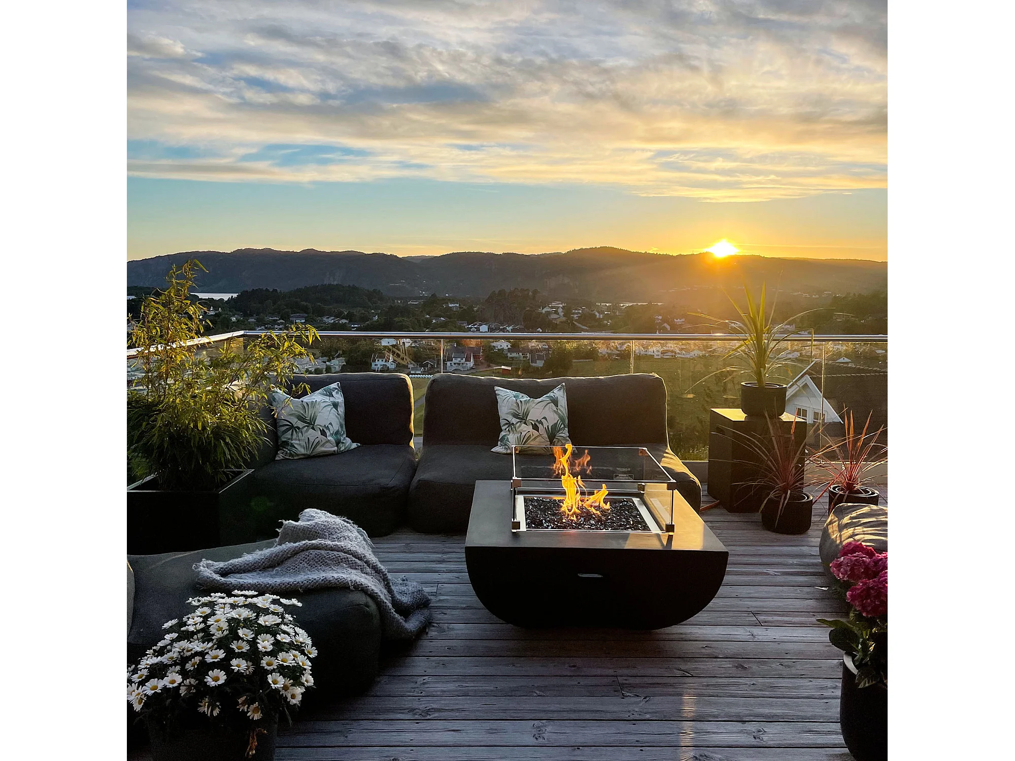 Ensemble braséro à gaz Aurora 4 pcs - béton fibré, avec pare-vent et caches