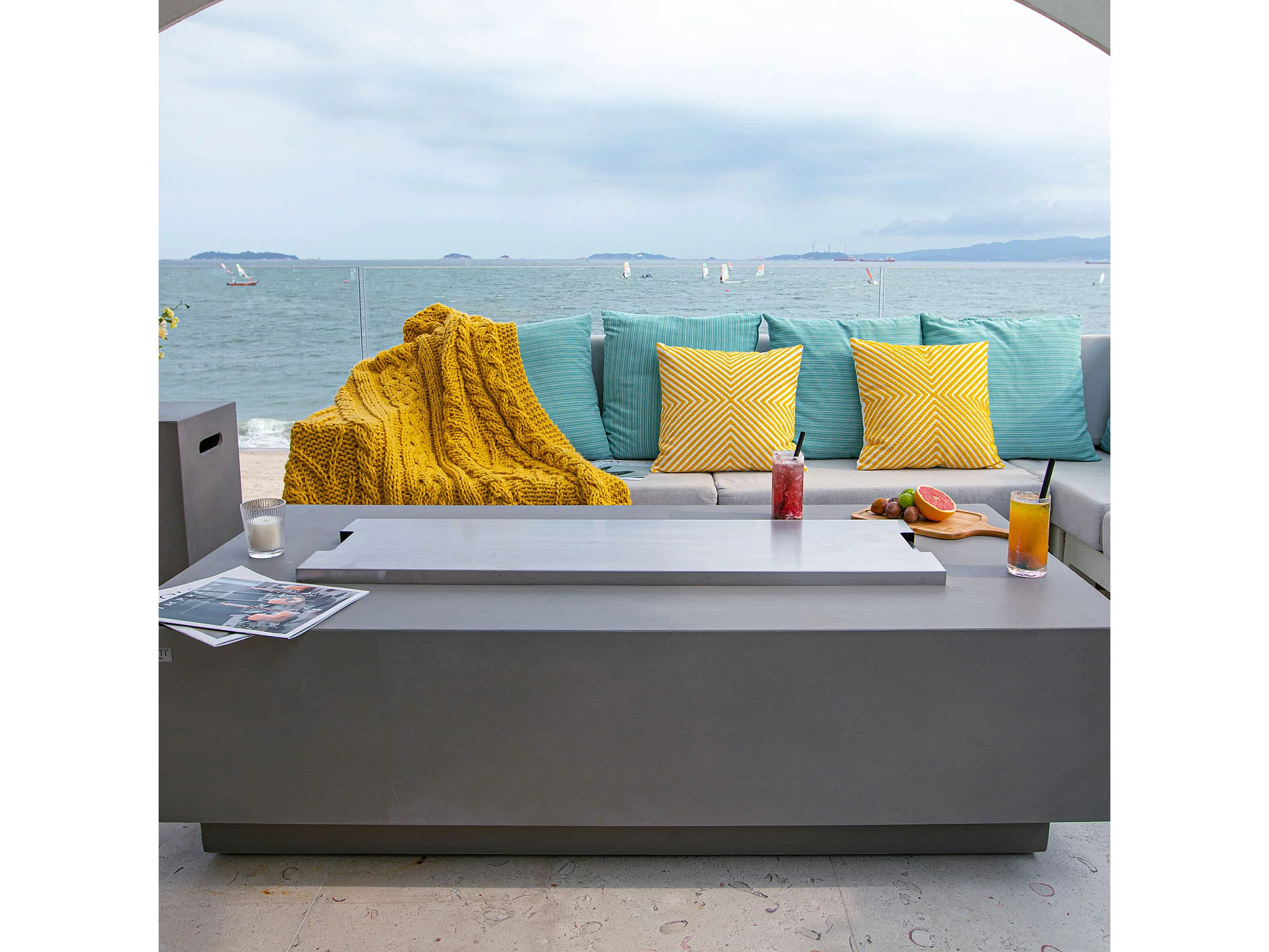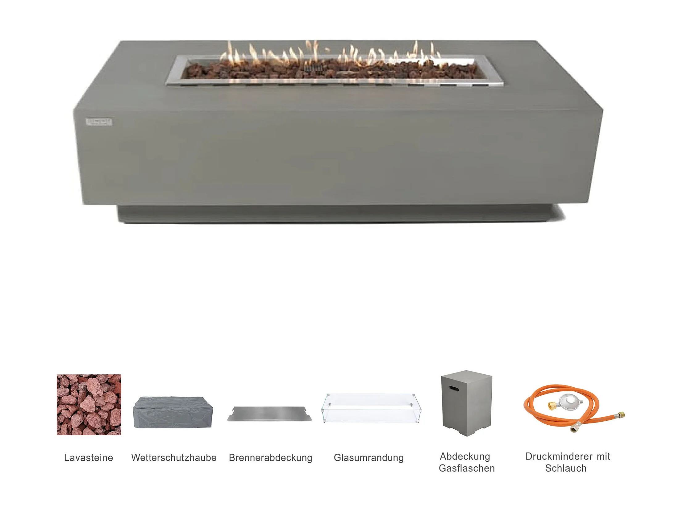Ensemble braséro à gaz Granville 4 pcs - béton fibré, avec pare-vent et caches