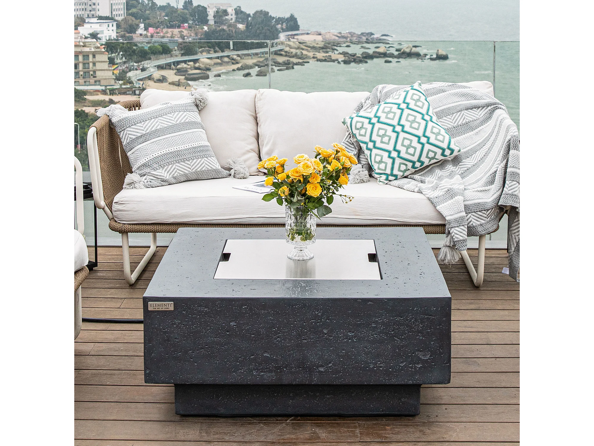 Ensemble braséro à gaz Manhattan 4 pcs - béton fibré, avec pare-vent et caches