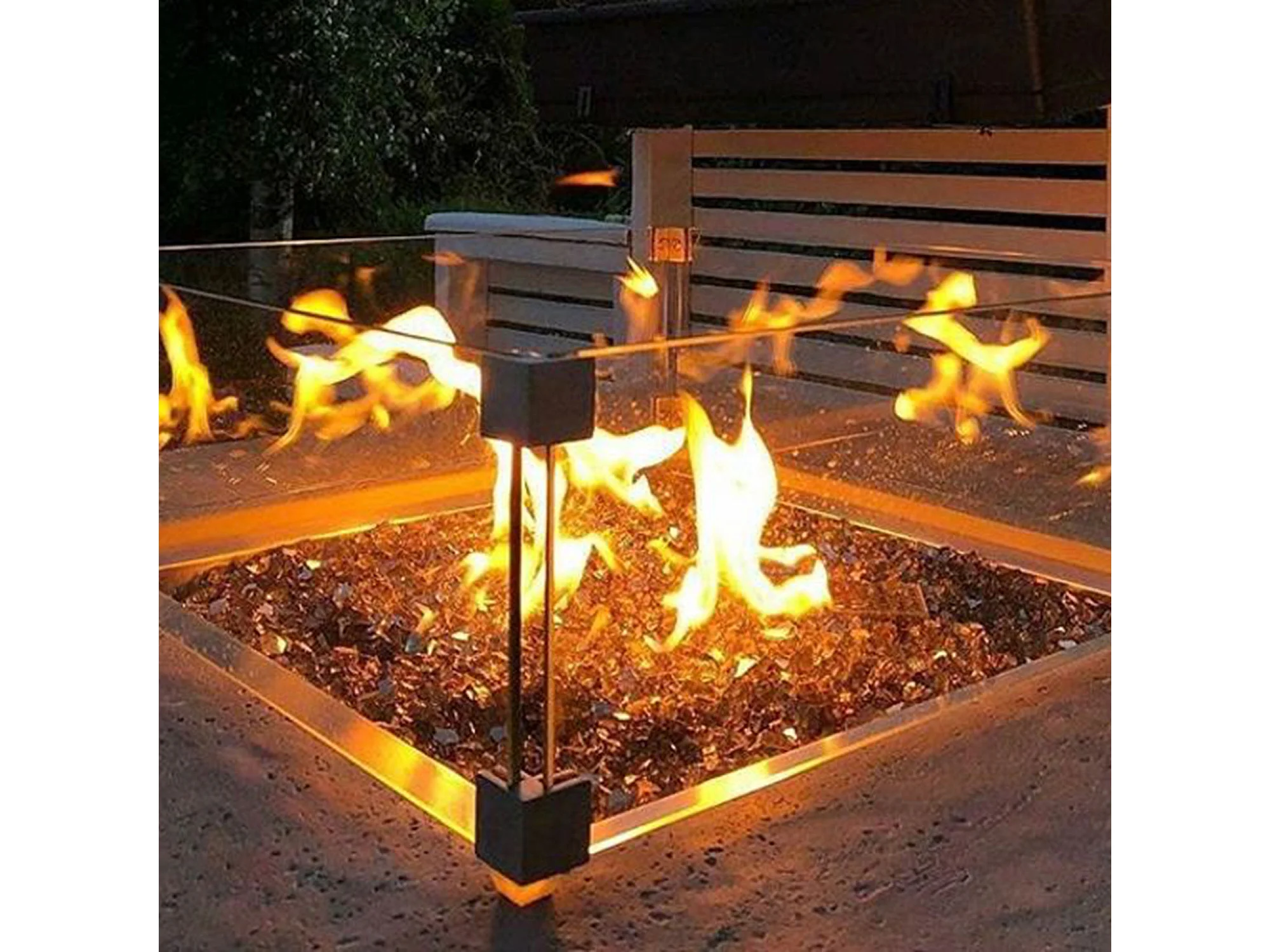 Ensemble braséro à gaz Manhattan 4 pcs - béton fibré, avec pare-vent et caches