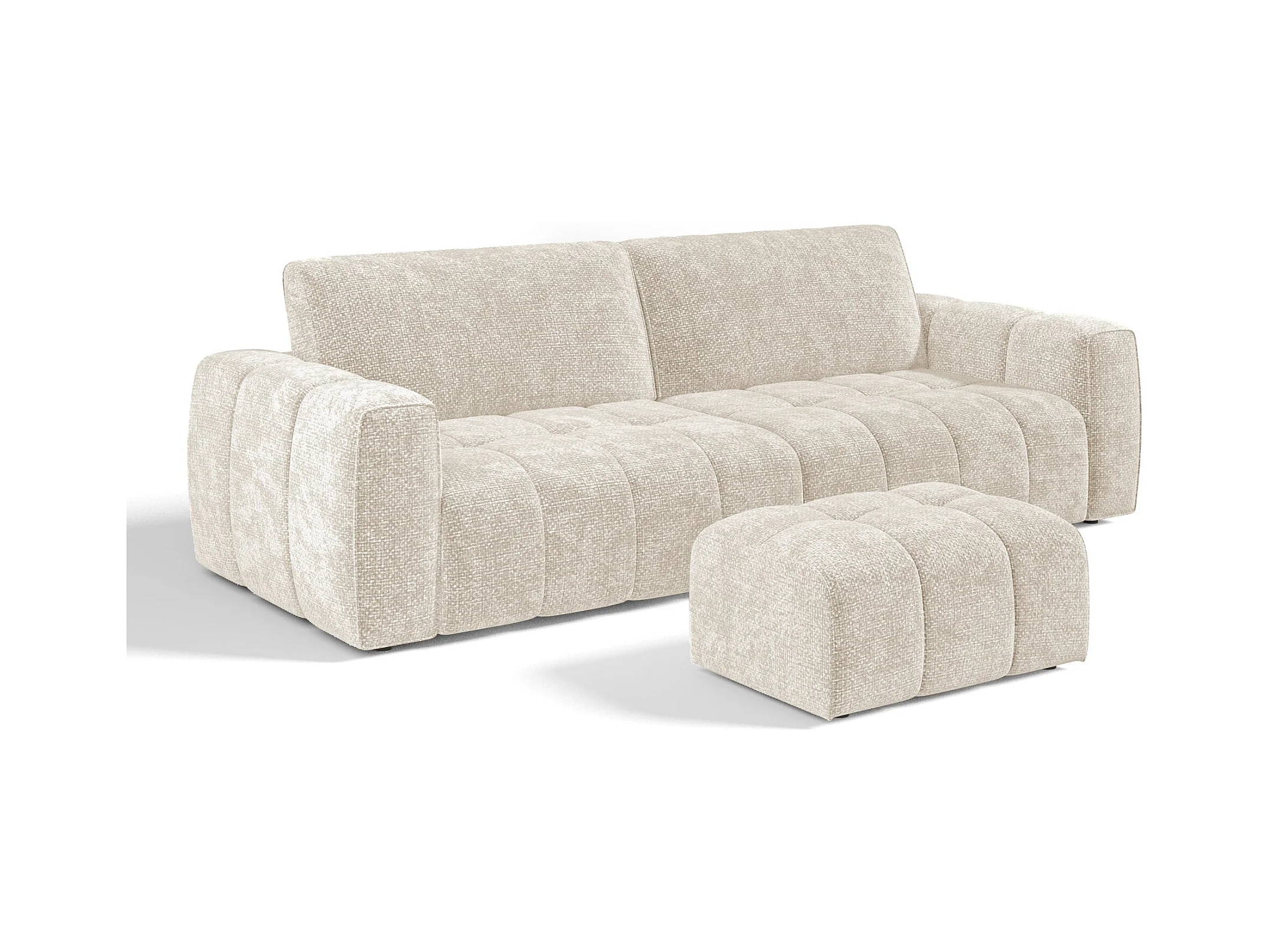 Ensemble canapé 4 places et pouf velours chenillé crème BARI
