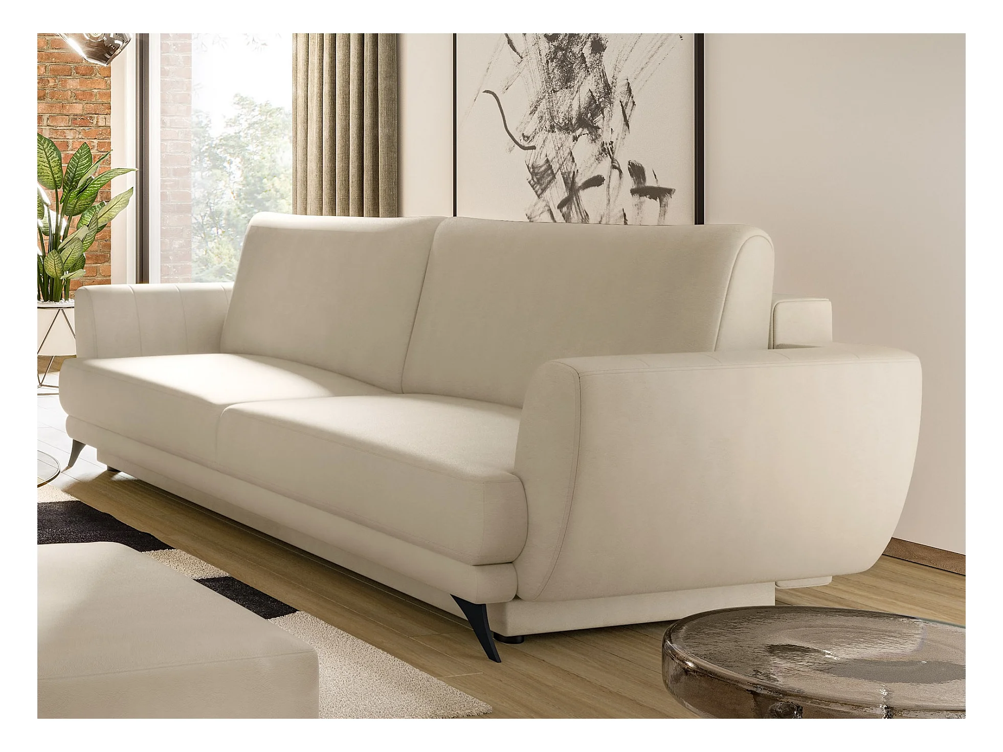 Ensemble canapé convertible simili cuirl beige Zora - 1 canapé 3 places + 1 fauteuil + 1 pouf