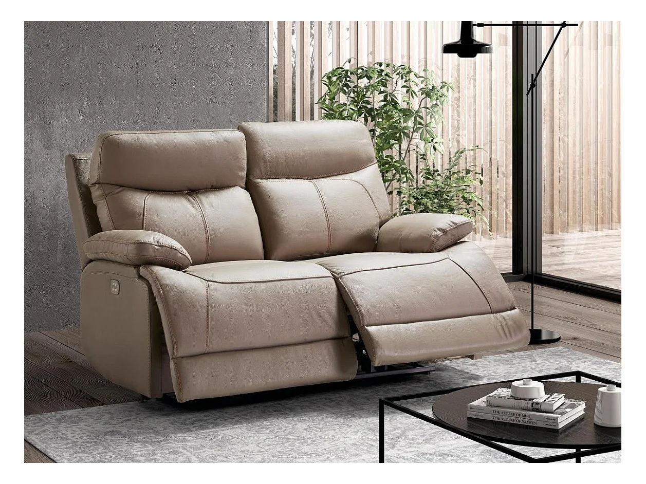 Ensemble canapé de relaxation 3 places électrique 2 places fixe cuir beige Ducka
