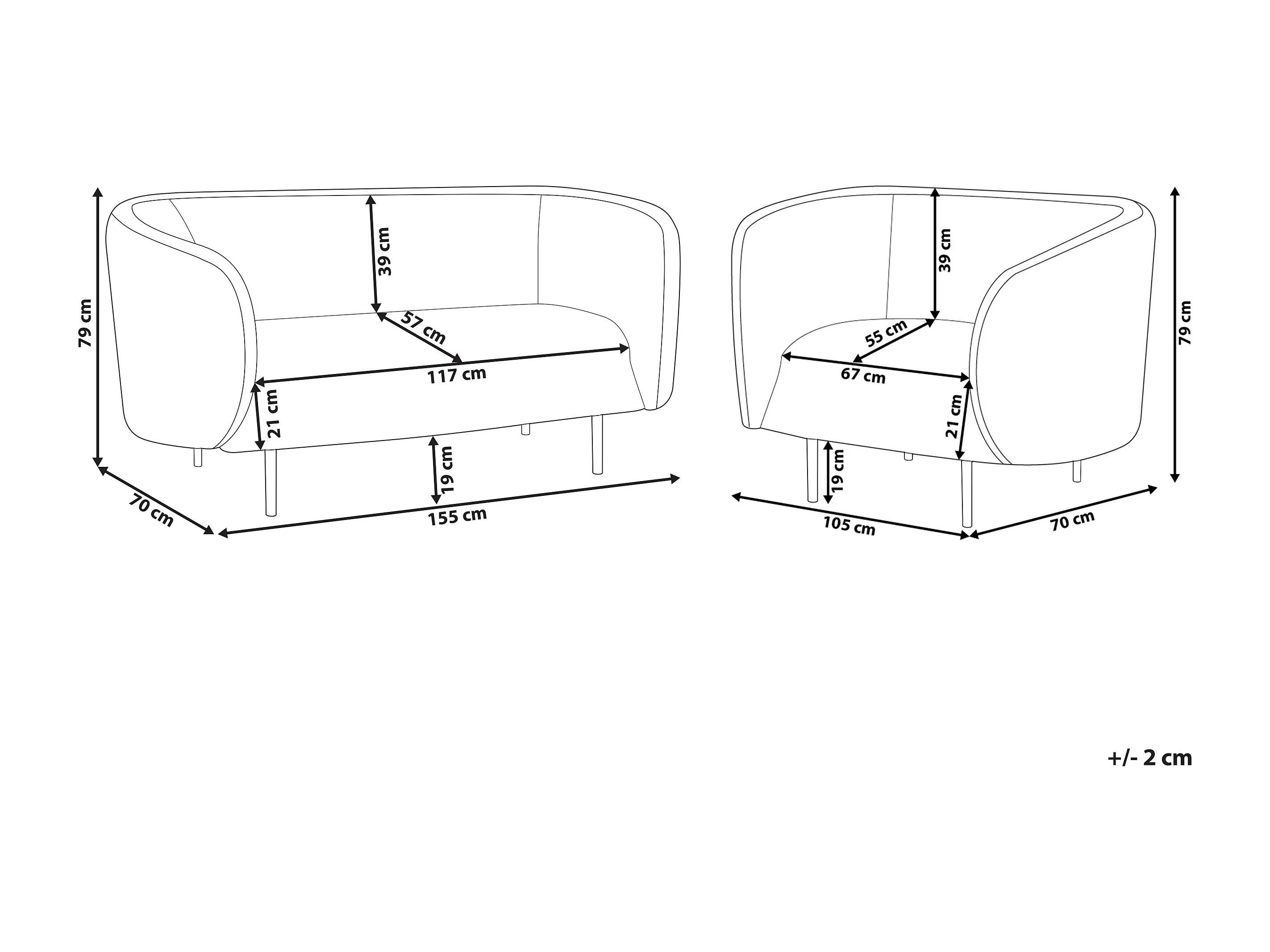 Ensemble de salon 3 places LOEN Tissu Noir/blanc