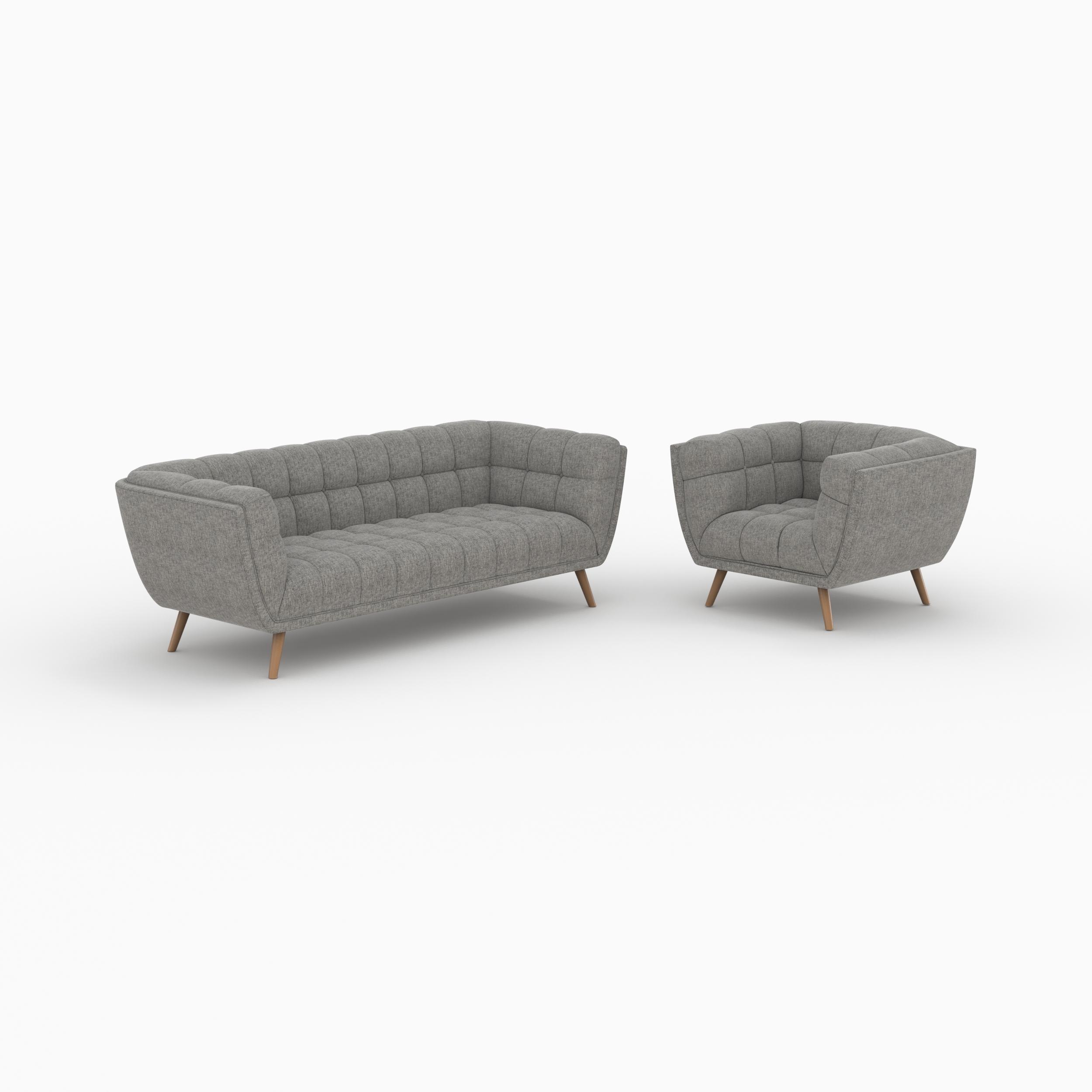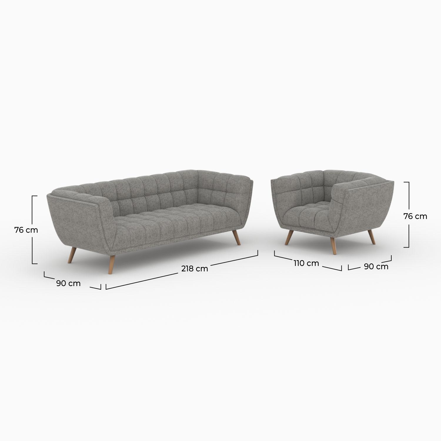 Ensemble canapé et fauteuil en tissu gris 4 places - Carmen