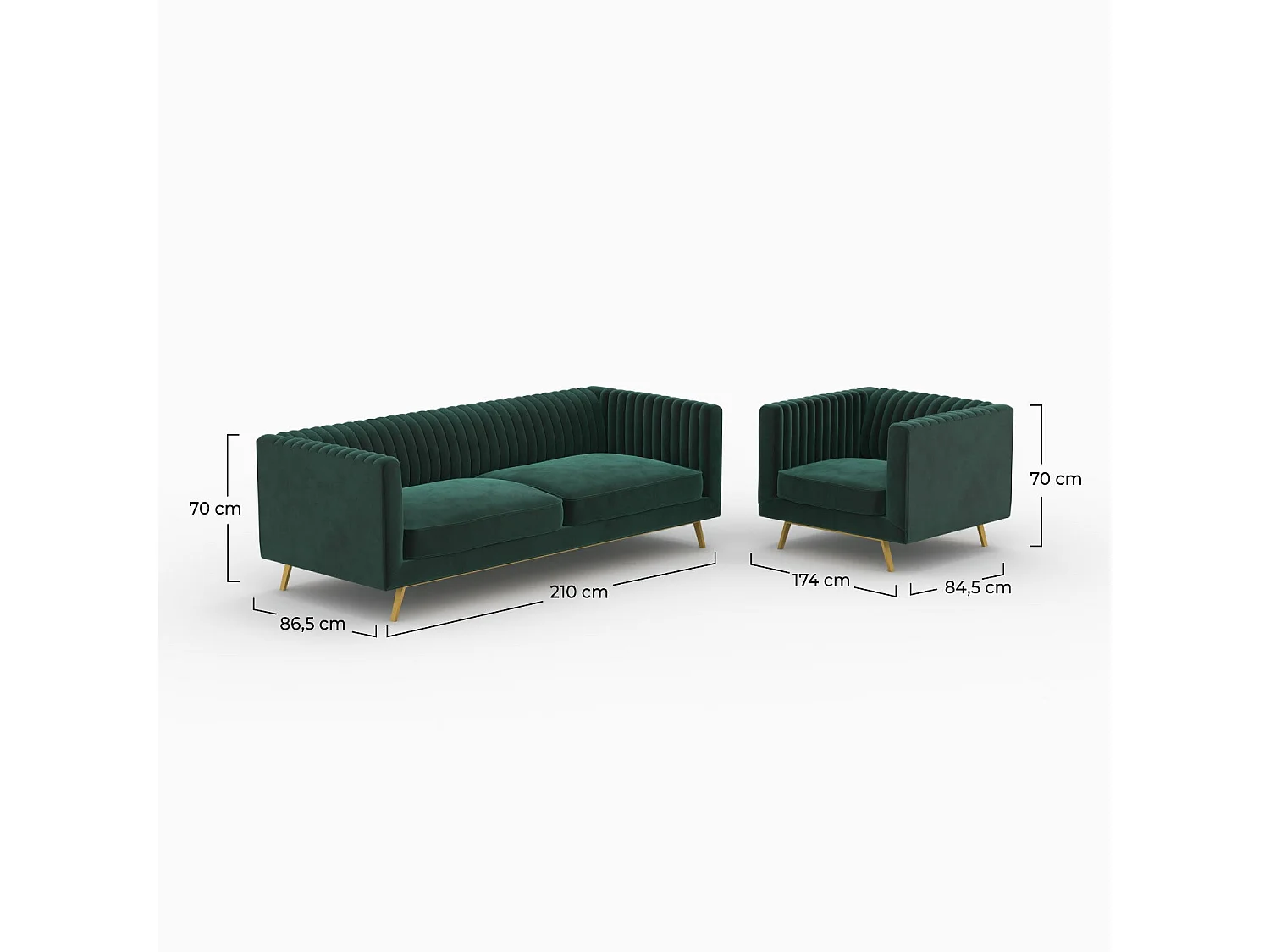 Ensemble canapé et fauteuil en velours vert 3 places - Gatsby