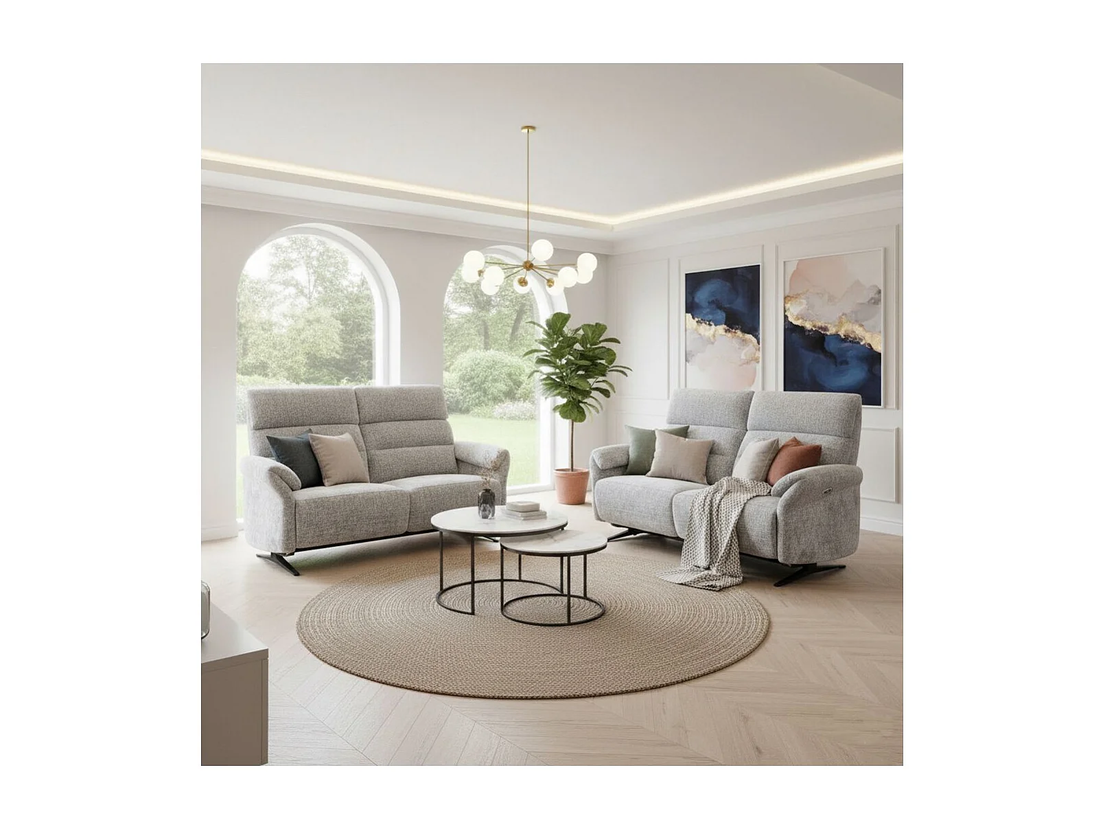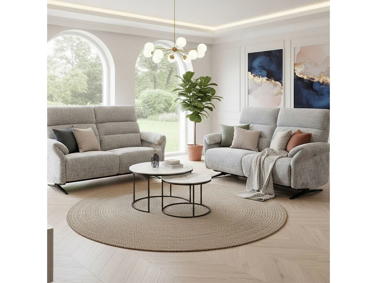 Ensemble canapé relax électrique 3 places + canapé fixe 2 places tissu maillé gris - LAMA