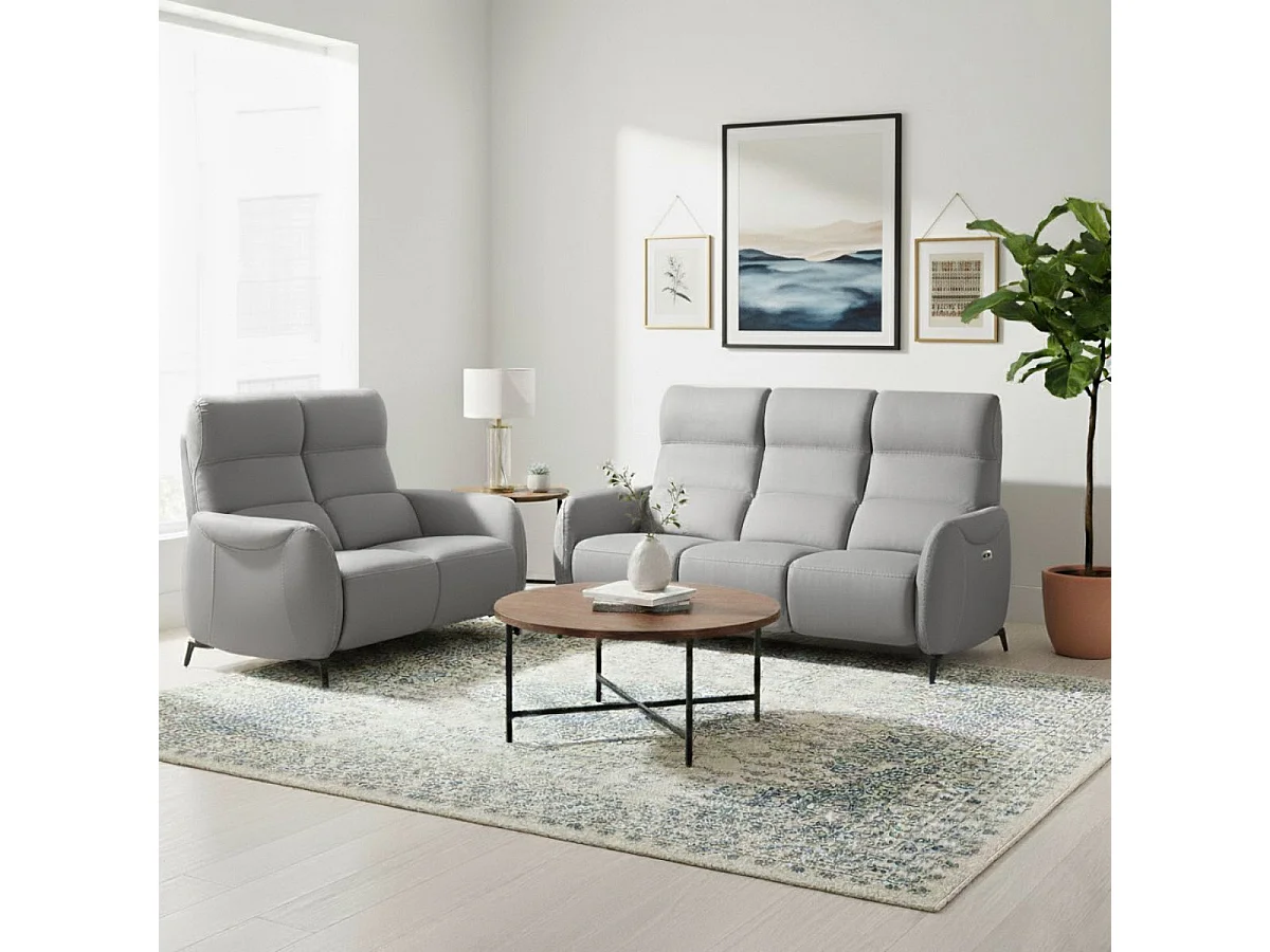 Ensemble canapé relax électrique 3pl + canapé fixe 2pl tissu micro peau gris clair - SMALK