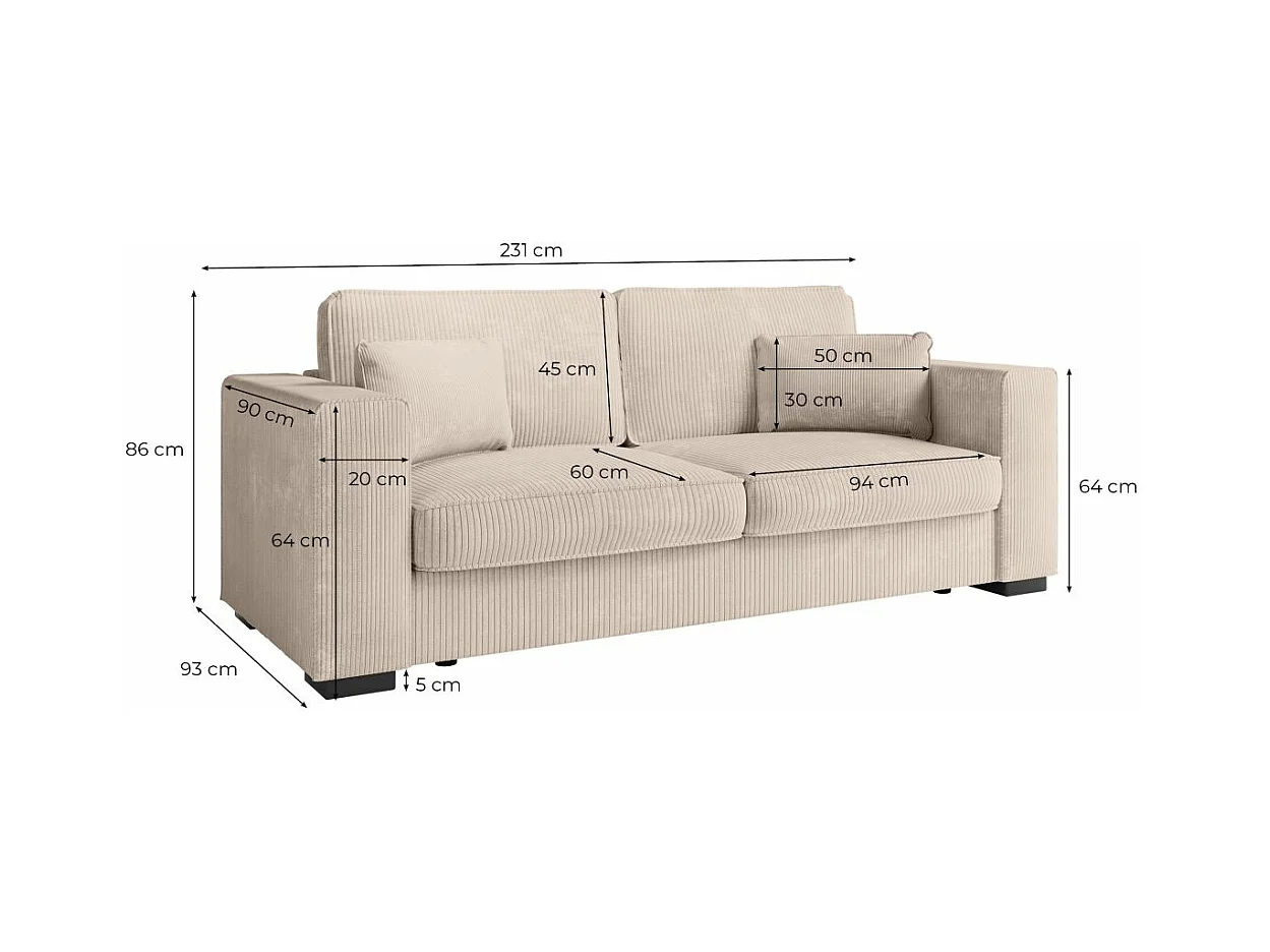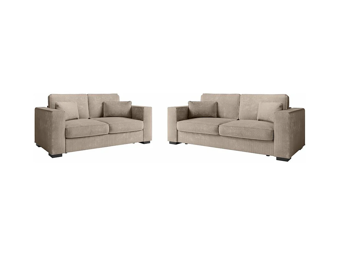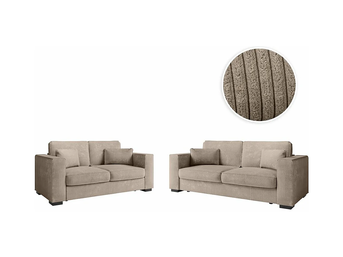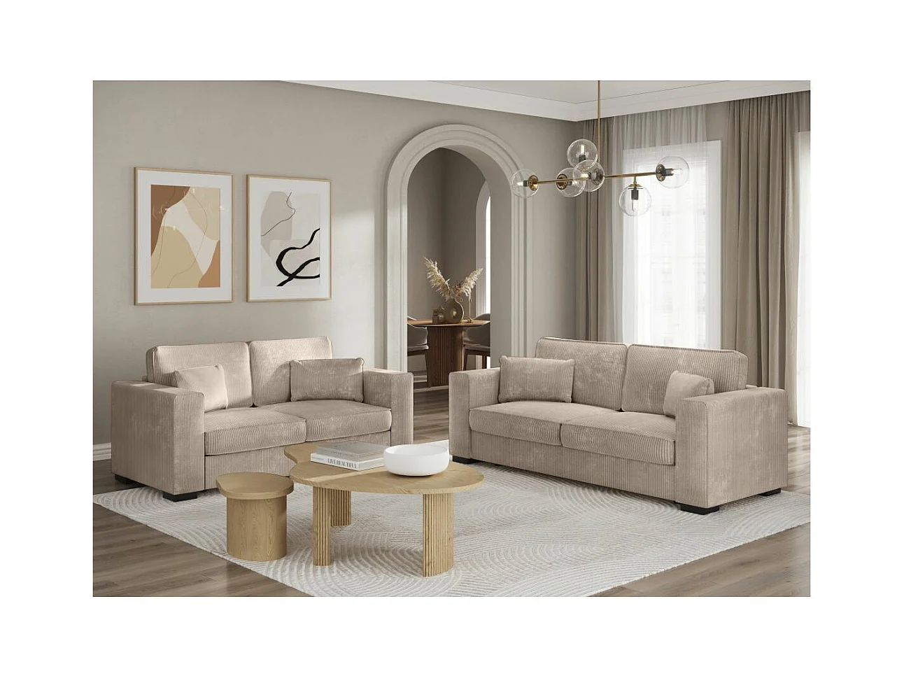 Ensemble canapés 2 places et 3 places Belami en velours côtelé - Taupe - Loungitude
