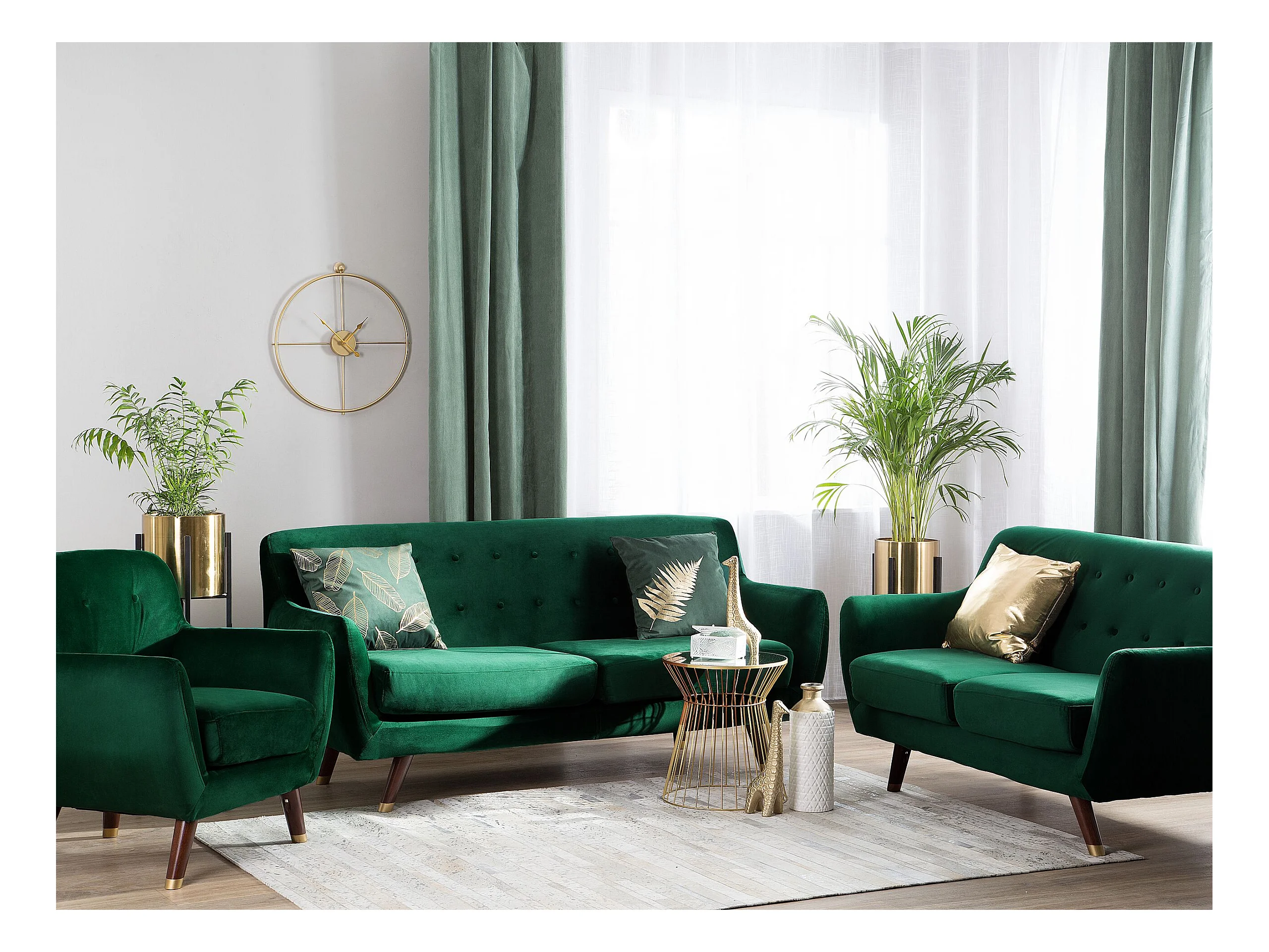 Ensemble canapés et fauteuil en velours vert émeraude 6 places BODO