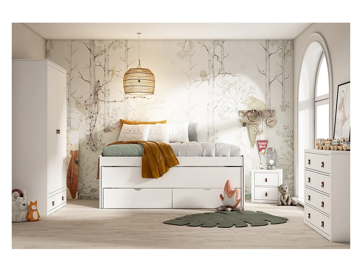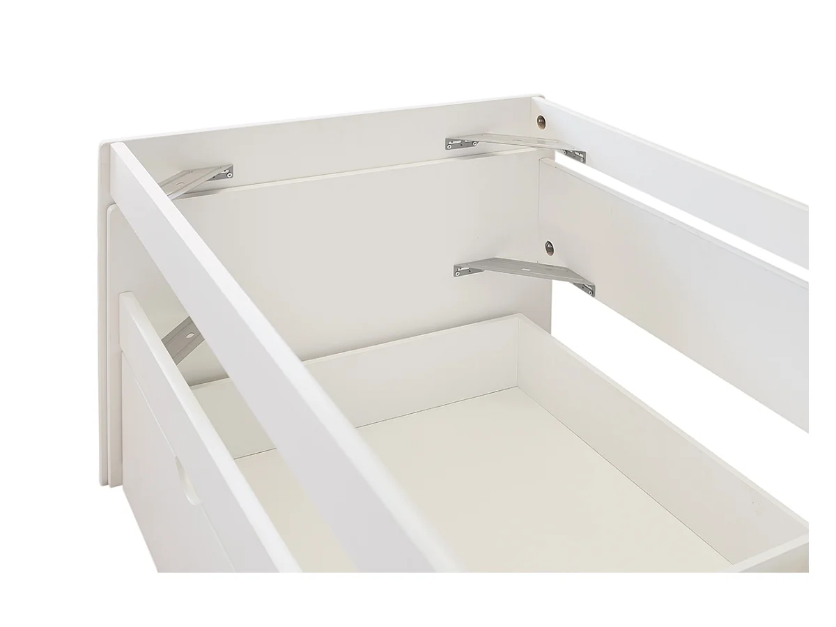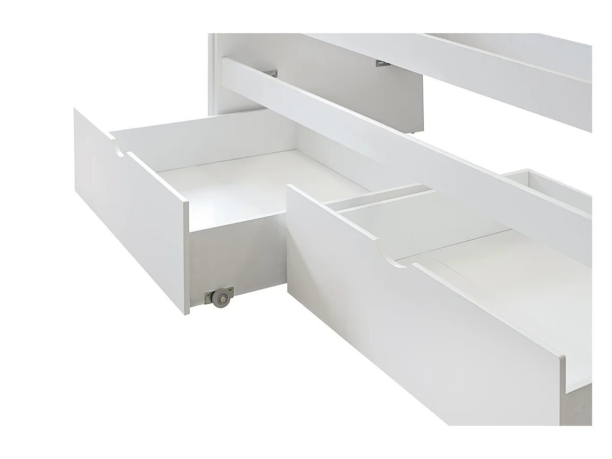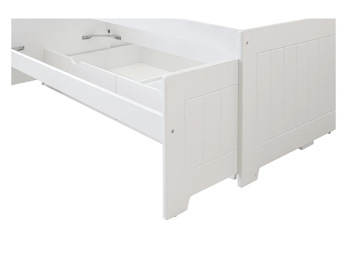 Lit enfant gigogne avec tiroirs en bois de pin massif coloris blanc - Hauteur 72 x largeur 195 x profondeur 96 cm