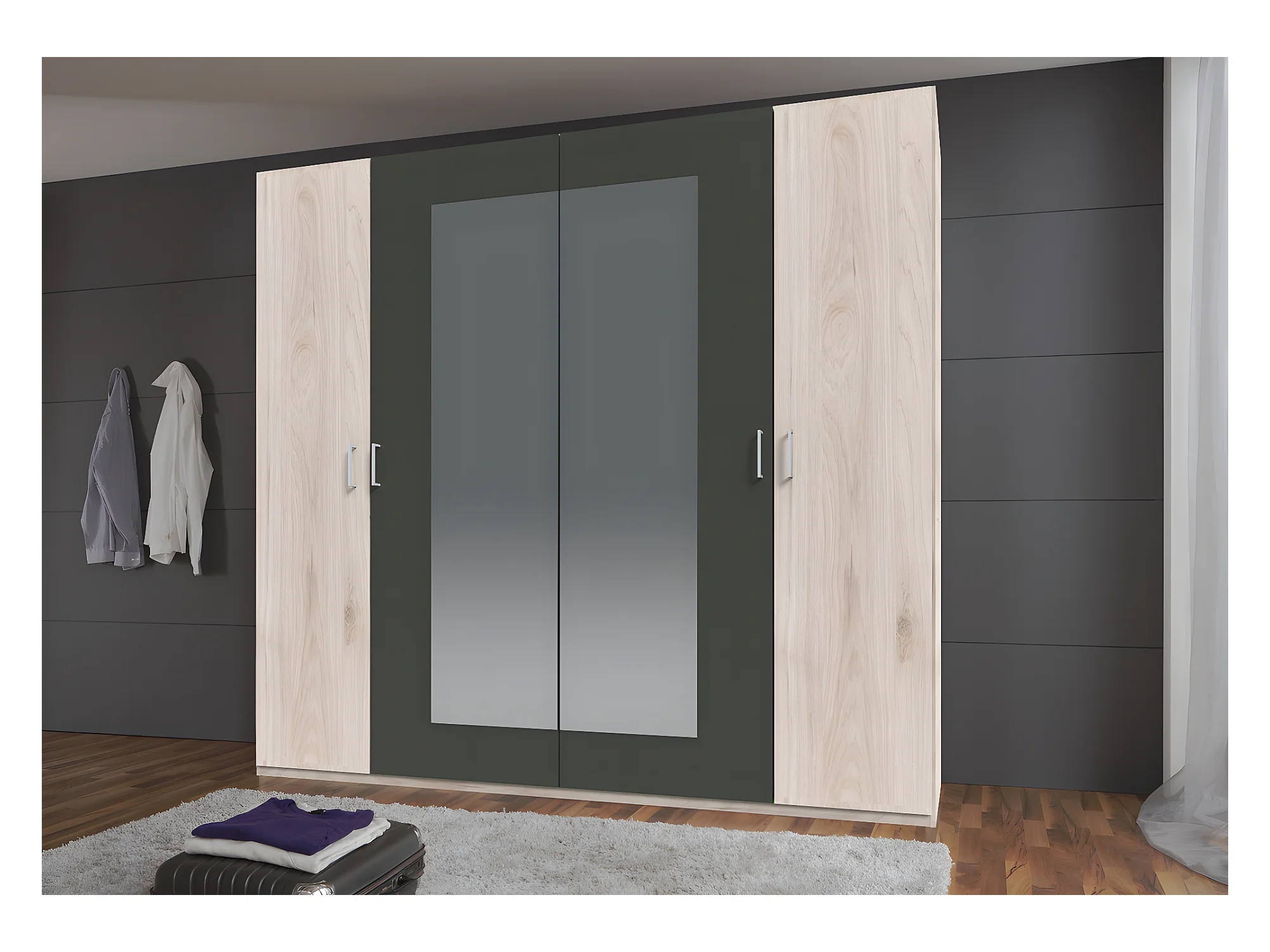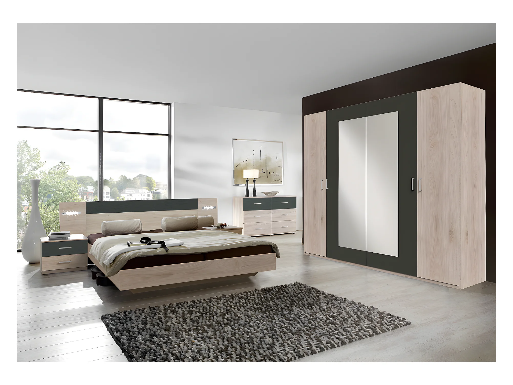 Ensemble chambre adulte Imitation chêne Hickory rechampis graphite - 160 x 200 cm