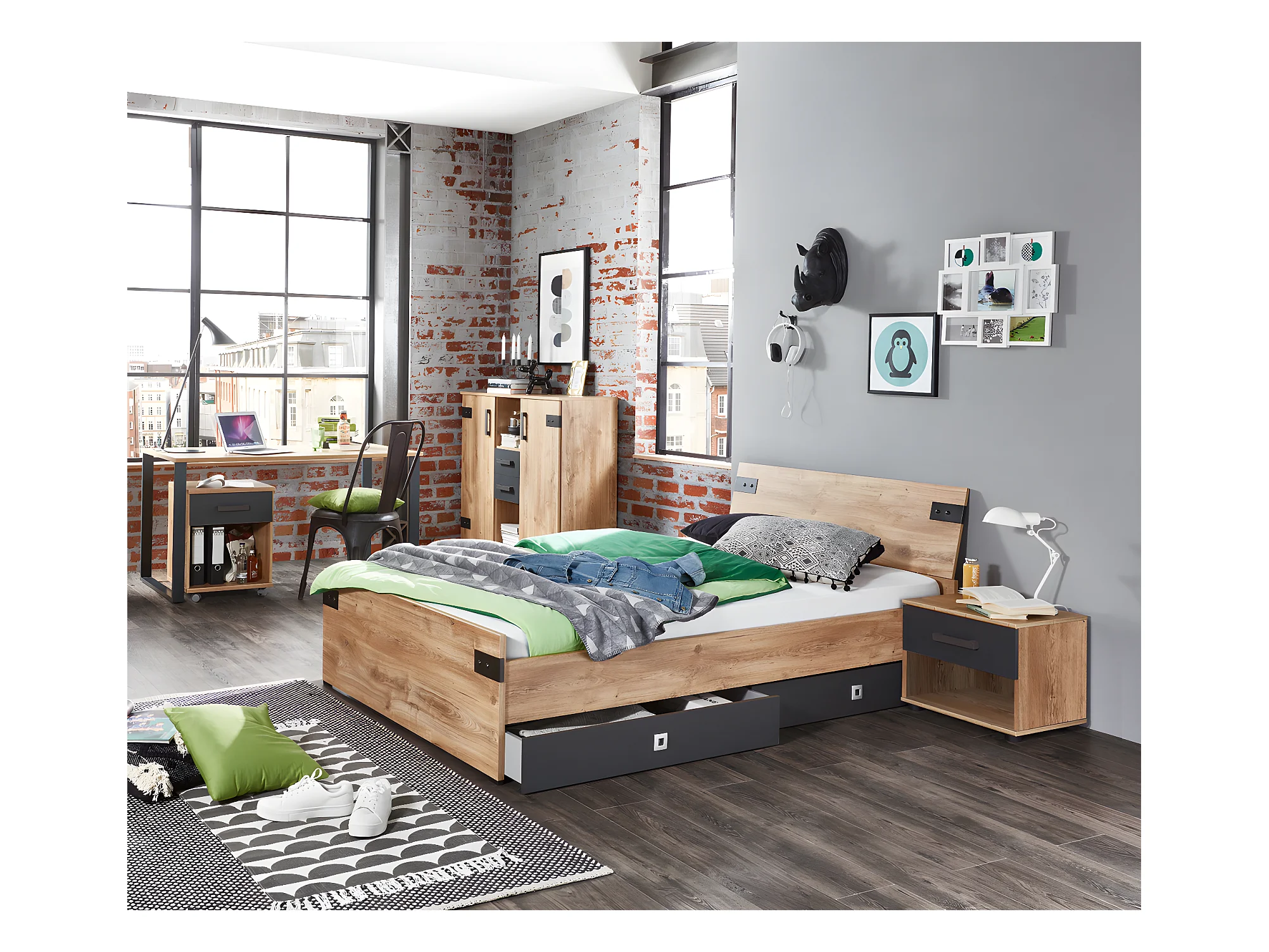 Ensemble chambre enfant/ado Imitation chêne poutre, rechampis graphite - 90 x 200 cm