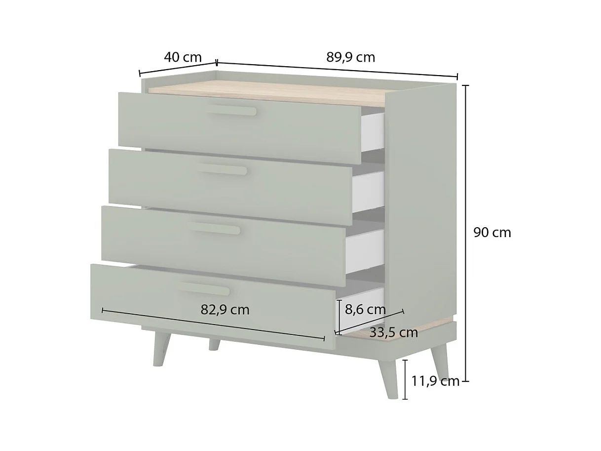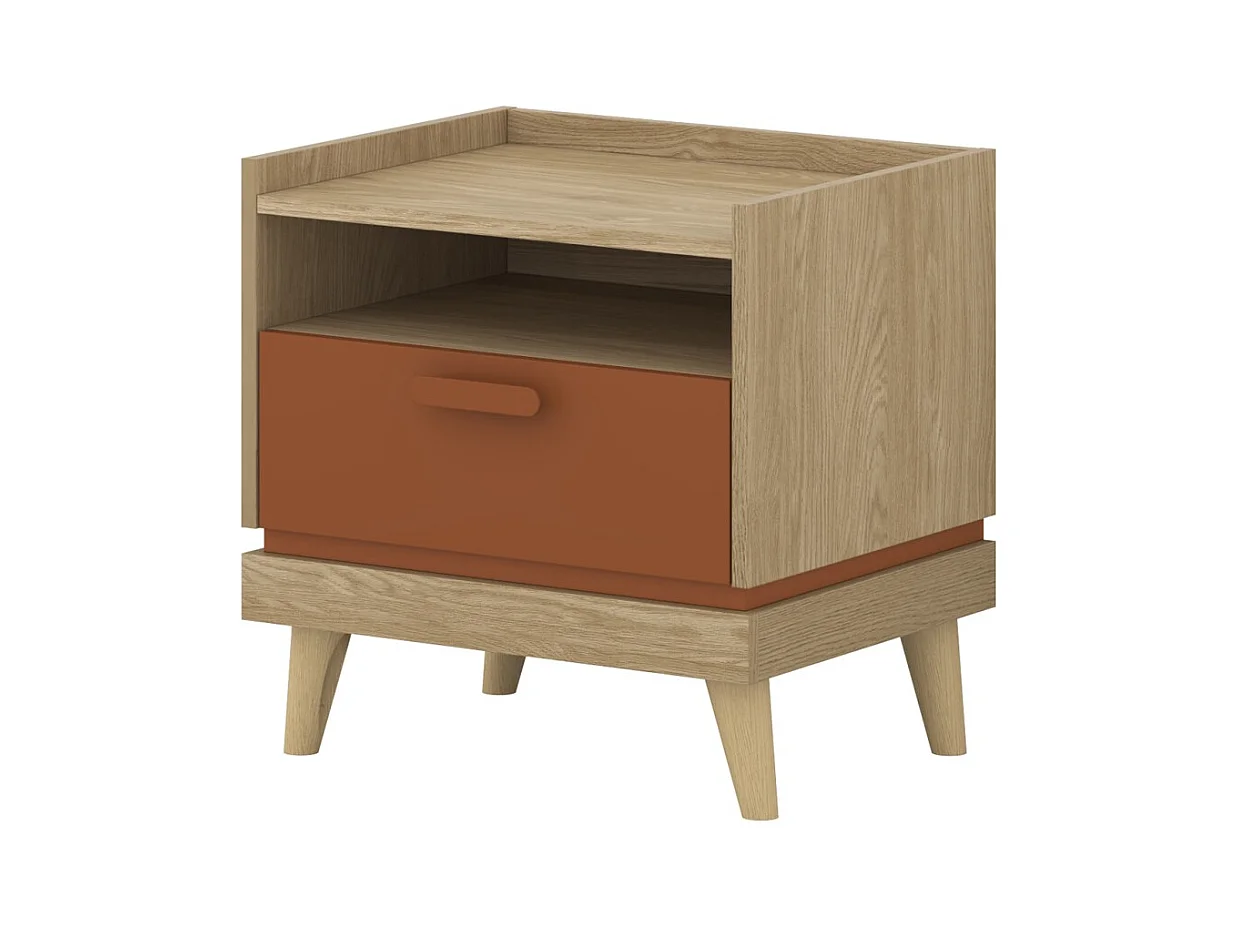 Ensemble chambre NOKI – Lit 160x200 + armoire 3 portes + commode + table de chevet – Chêne clair et moka style scandinave