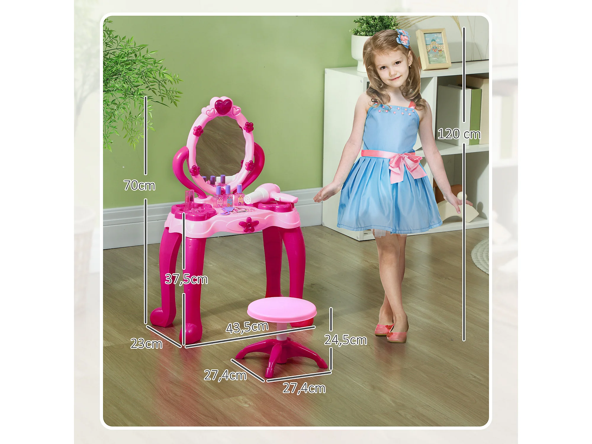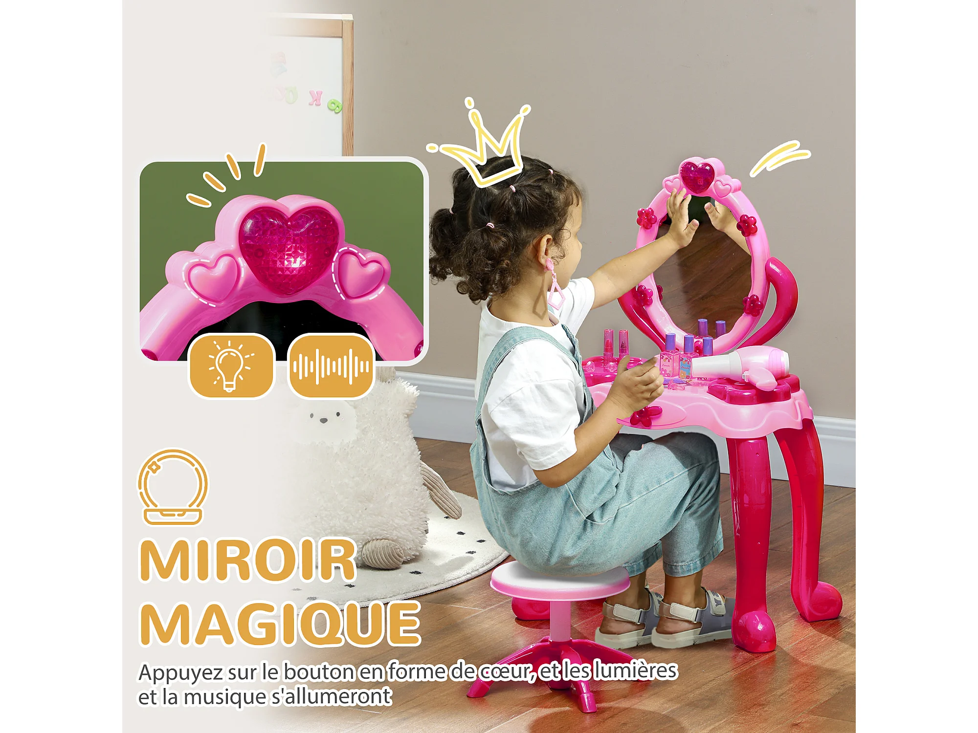Ensemble coiffeuse tabouret enfant design - nombreux accessoires - effets lumineux sonores - rose