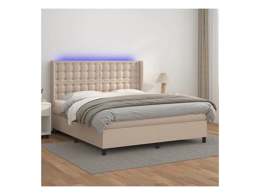 Ensemble complet boxspring - 160x200 cm + sommier à lattes de lit+ matelas LED Cappuccino SRGW42203