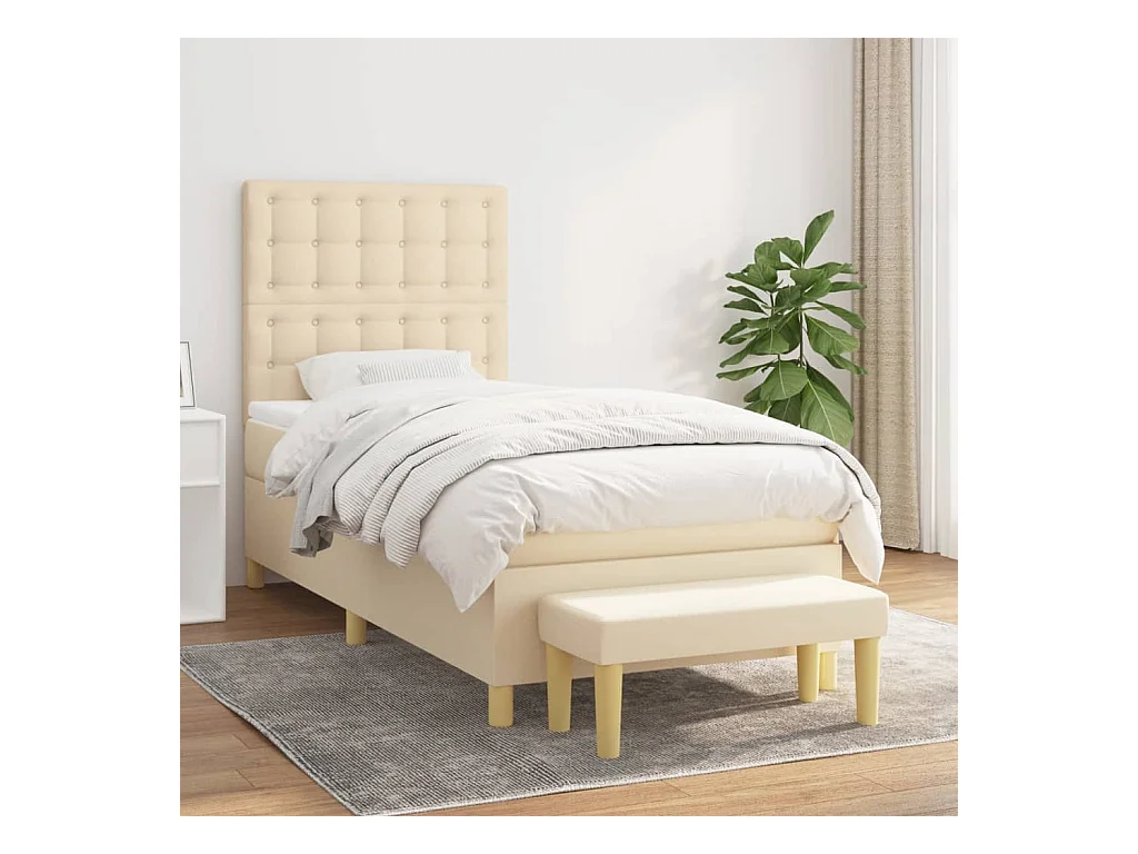Ensemble complet boxspring + matelas + Banc Crème 100x200 cm Tissu FR98137