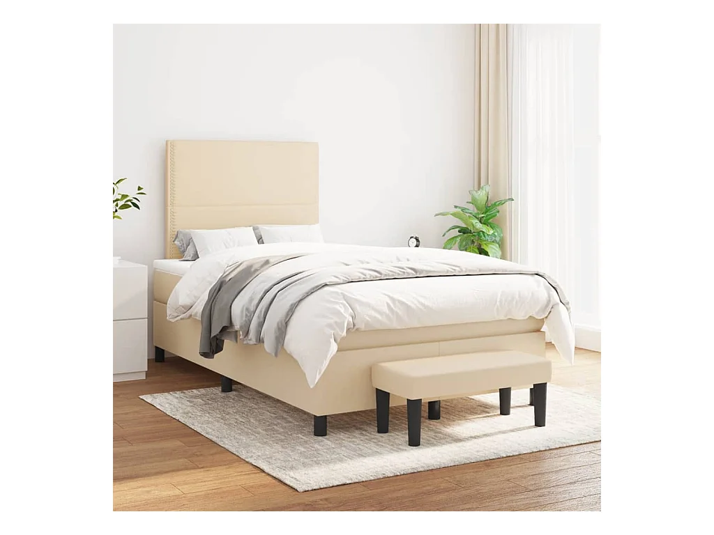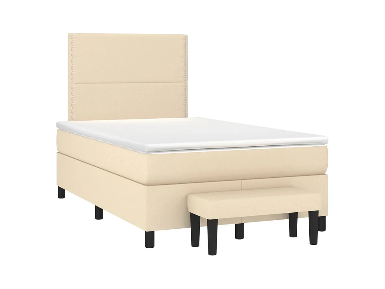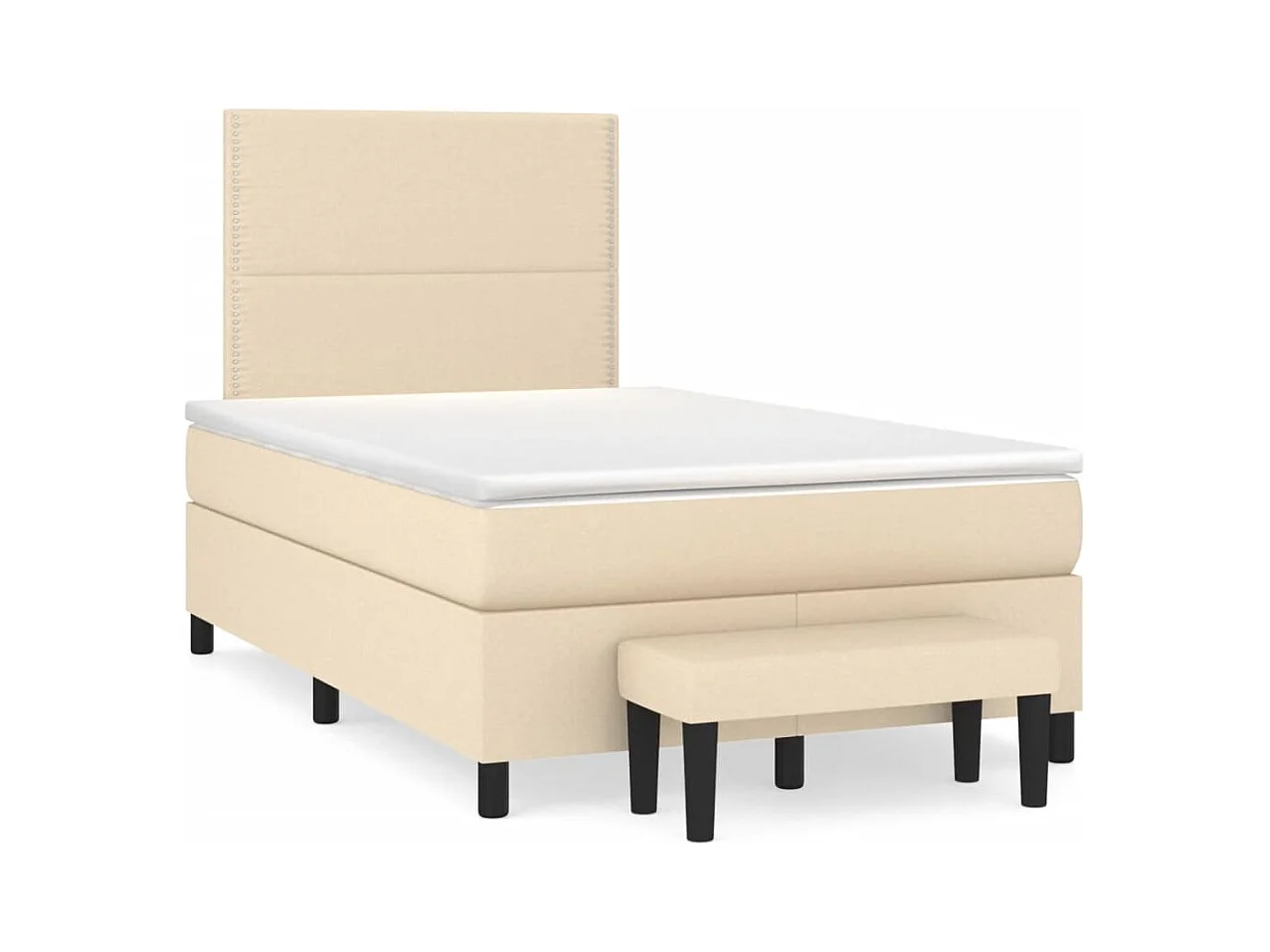 Ensemble complet boxspring + matelas + Banc crème 120x190 cm tissu FR17837