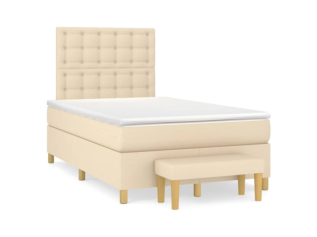 Ensemble complet boxspring + matelas + Banc Crème 120x200 cm Tissu FR30400