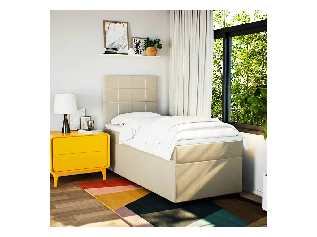 Ensemble complet boxspring + matelas Crème 100x200 cm Tissu FR33352